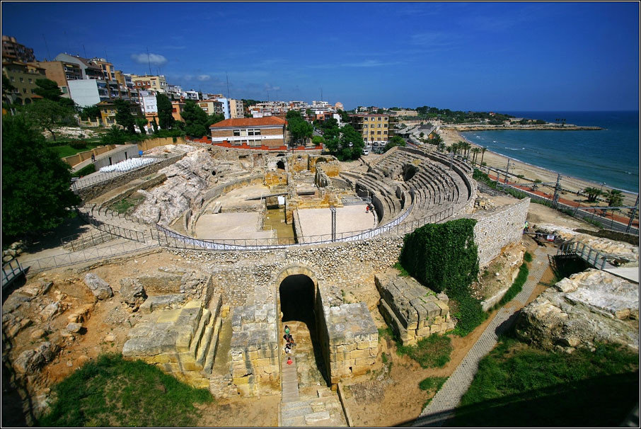 Зато вот Таррагона показалась прекрасной и удивительной. Маленький городок в часе езды на электричке от Барселоны, а от Салоу — 15 минут на автобусе. Когда-то он назывался Таррако и был столицей провинции Рима, но времена имперского величия для него давно прошли. Остался форум, амфитеатр на берегу моря, развалины для туристов, статуи цезарей, ну и гордость местных жителей за былую славу.