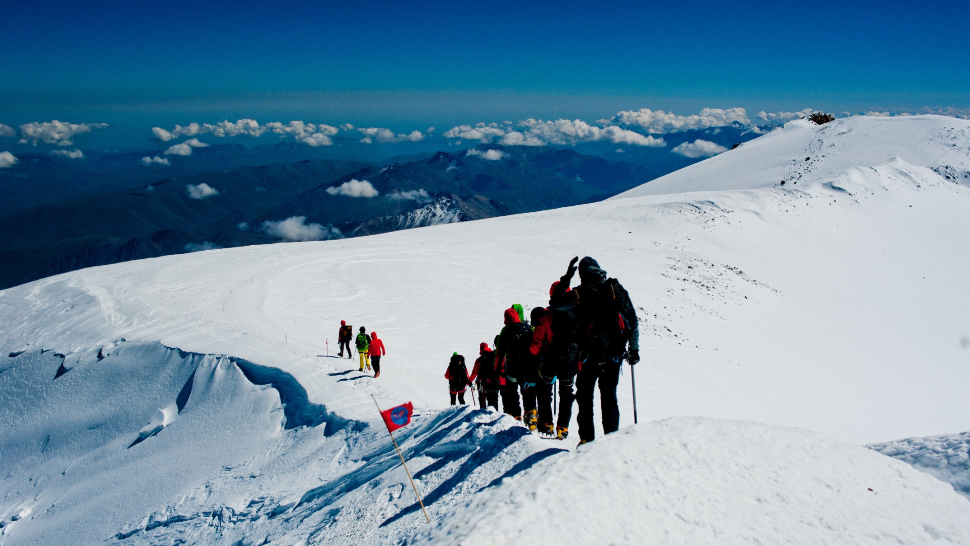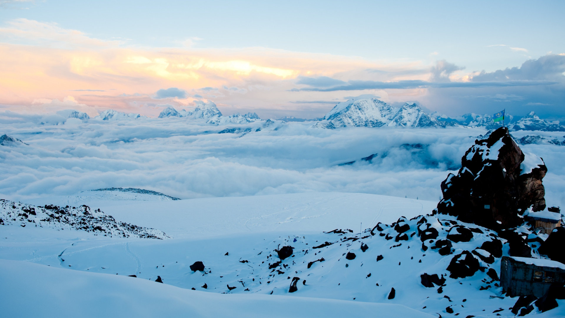 Снаряжение.Летний вариант того, что вам точно нужно – термобелье, плотные штаны, пуховая куртка, хорошие непромокаемые перчатки, шапка, спальный мешок, каремат, очки от солнца, крем с spf не ниже 50, треккинговые палки (очень желательно), ледоруб, кошки, обвязка, ус, карабин.