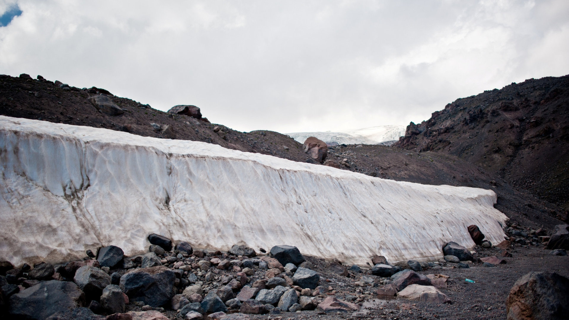 Кто-то остается здесь на ночёвку, для лучшей акклиматизации, так наверное будет правильнее. Я пошла выше пешком (пешком – это важно. Ни на снегоходе, ни на подъемнике, пора к высоте привыкать) до Приюта «Мария»(4100 м). Как только появляется снег или лёд – обуваем кошки.