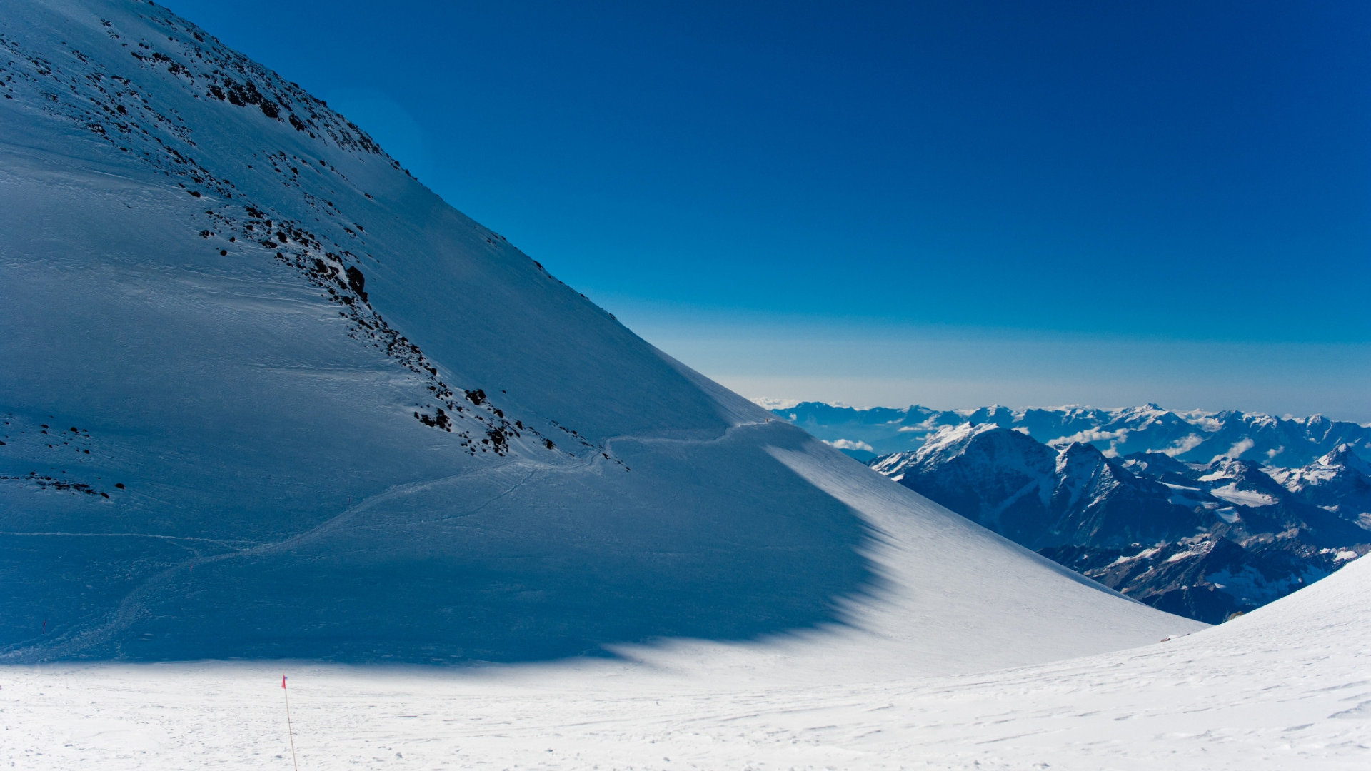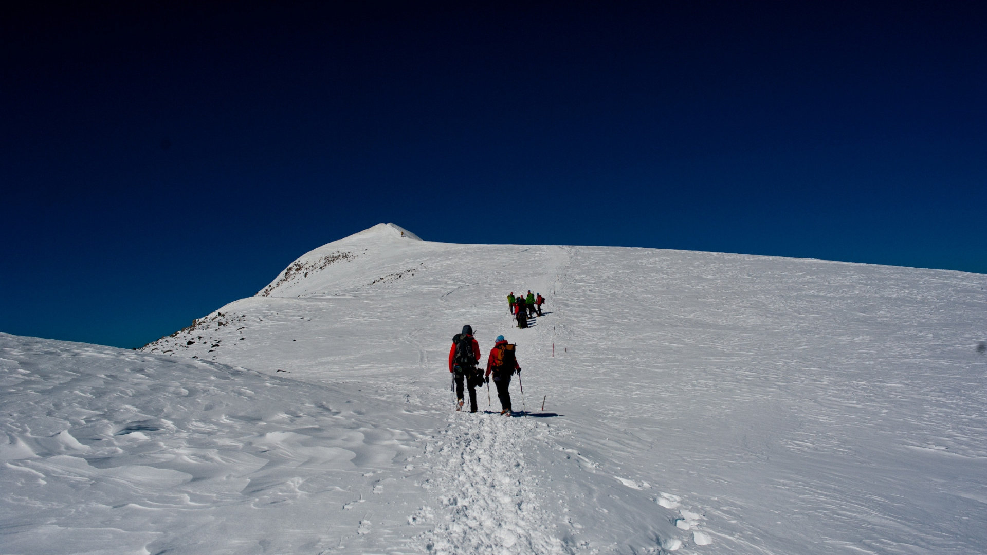 Во второй день поднимаемся на гору Чегет (3700 м) – выходим из Терскола в обратном направлении