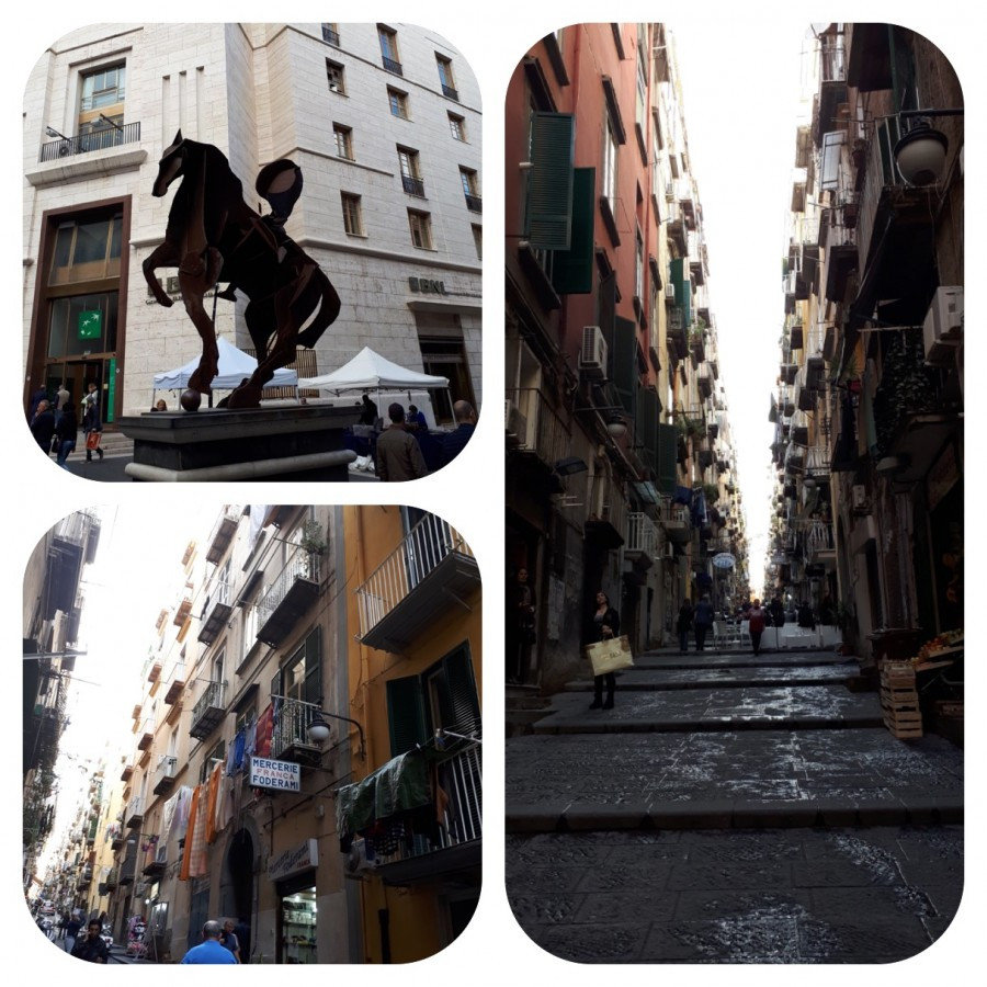 Далее мы немножко погуляли по улочкам Неаполя. Они очень колоритны. На всех балконах, окнах и просто фасадах действительно развешано белье. Приспособления для его сушки очень разнообразны, в числе прочих встречались конструкции с навесом от дождя. Улочки очень узкие и, как водится в Италии, довольно грязные. Но колорит несомненный.