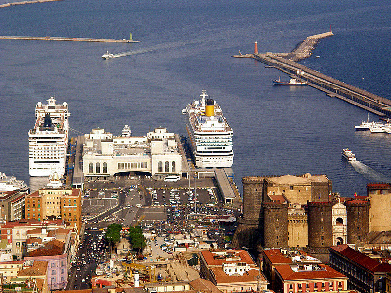 Порт Неаполя расположен наиудобнейшим образом в самом центре города. В аккурат под стенами Castel Nuovo. Ну правда «nuovo” этот кастель является исключительно по итальянским меркам. Этот величественный замок построен в XIII в. королем Карлом Анжуйским (отсюда – другое название Maschio Angioino) в качестве королевской резиденции, крепости и культурного центра: здесь останавливались поэт Петрарка, художник Джотто, писатель Боккаччо. С другой стороны, что мы хотим от людей, упорно селящихся у подножья вулкана, откопав при этом предыдущее поселение таких же смелых или оптимистичных жителей?