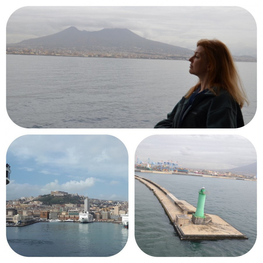 Первым портом посещения был Неаполь. Заходили мы туда не с раннего утра, как во все остальные последующие порты, а неторопливо к полудню. Поэтому после завтрака мы устроили себе большую обзорную экскурсию по кораблю, любуясь попутно на проплывающие мимо острова, островки и береговые поселения. Учитывая двухчасовую разницу с Москвой, московский же темп и слабое понимание на данном этапе принципов организации круиза, мы проснулись довольно рано, бодро оббежали пару раз корабль по периметру, рассмотрели все острова и островки и по итогу осели в каюте, ждать швартовки. В каюте давали розовый брют и Везувий по нашему борту.
