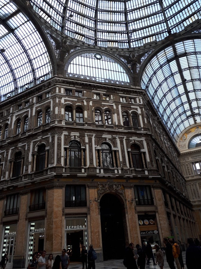 С ним мы и добрели до торговой улицей via Toledo на которой расположена галерея Galleria Umberto I. Галлерея похожа на миланскую, но более камерная и малолюдная, что позволяет хорошо рассмотреть и пофотографировать фасады и плиточный пол.