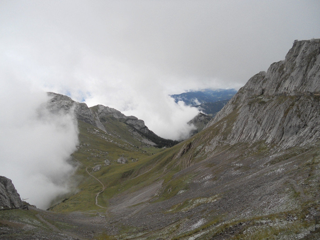 Кроме того, есть еще одна трактовка названия – якобы оно происходит от латинского PILEATUS — носящий головной убор: вершина Пилатуса всегда окутана облаками. И в наш приезд здесь тоже была непроглядная облачность.