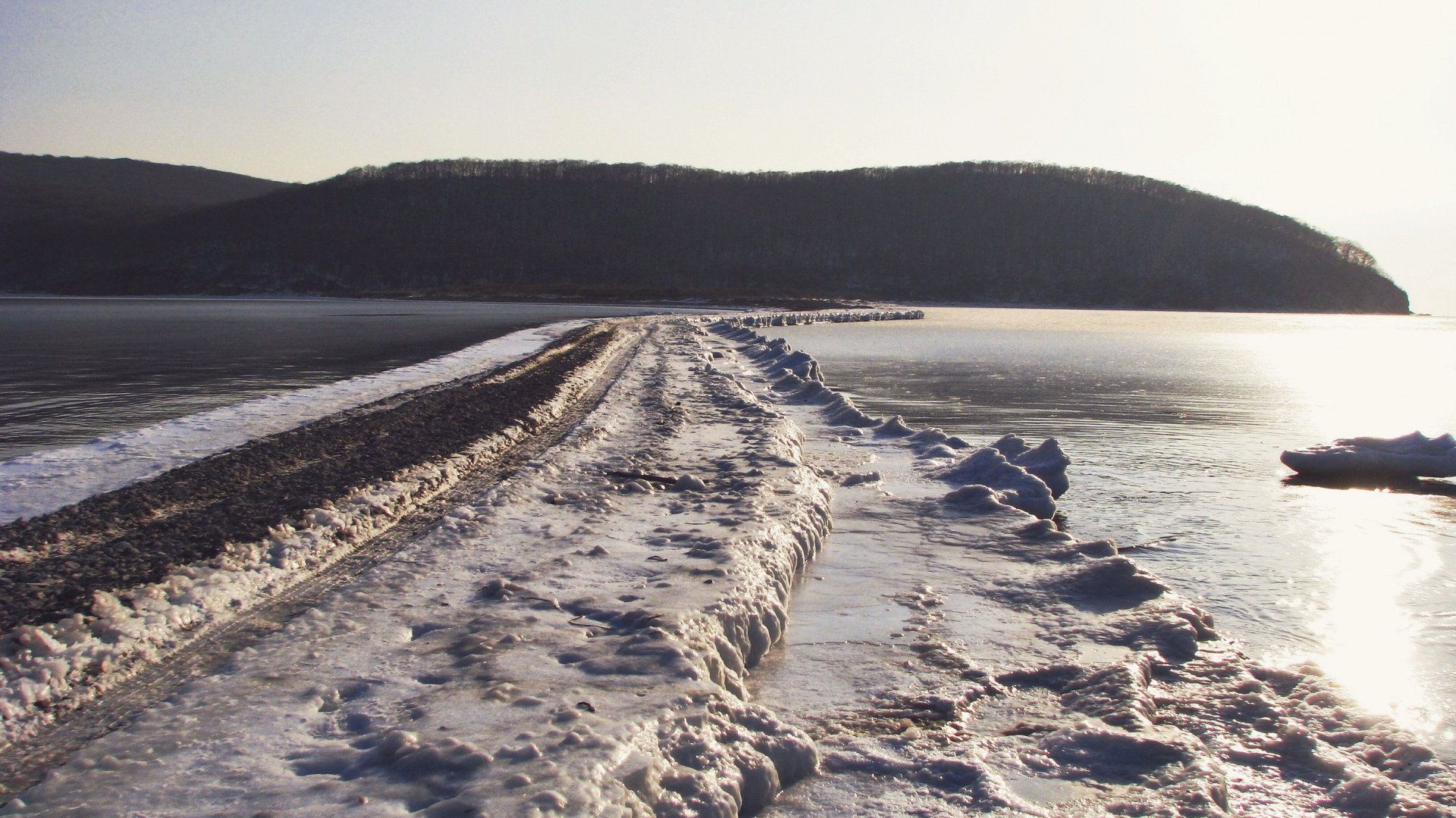 Выйдя на дорогу, практически сразу же поймал попутку до развилки на о.Шкота. К сожалению машина ехала в другую сторону, поэтому я вышел и продолжил свой путь пешком. Спустя час понял, что попутного транспорта больше не дождусь, так как в это время год и этот час, вряд ли кто-то решит ехать в столь отдаленное место.