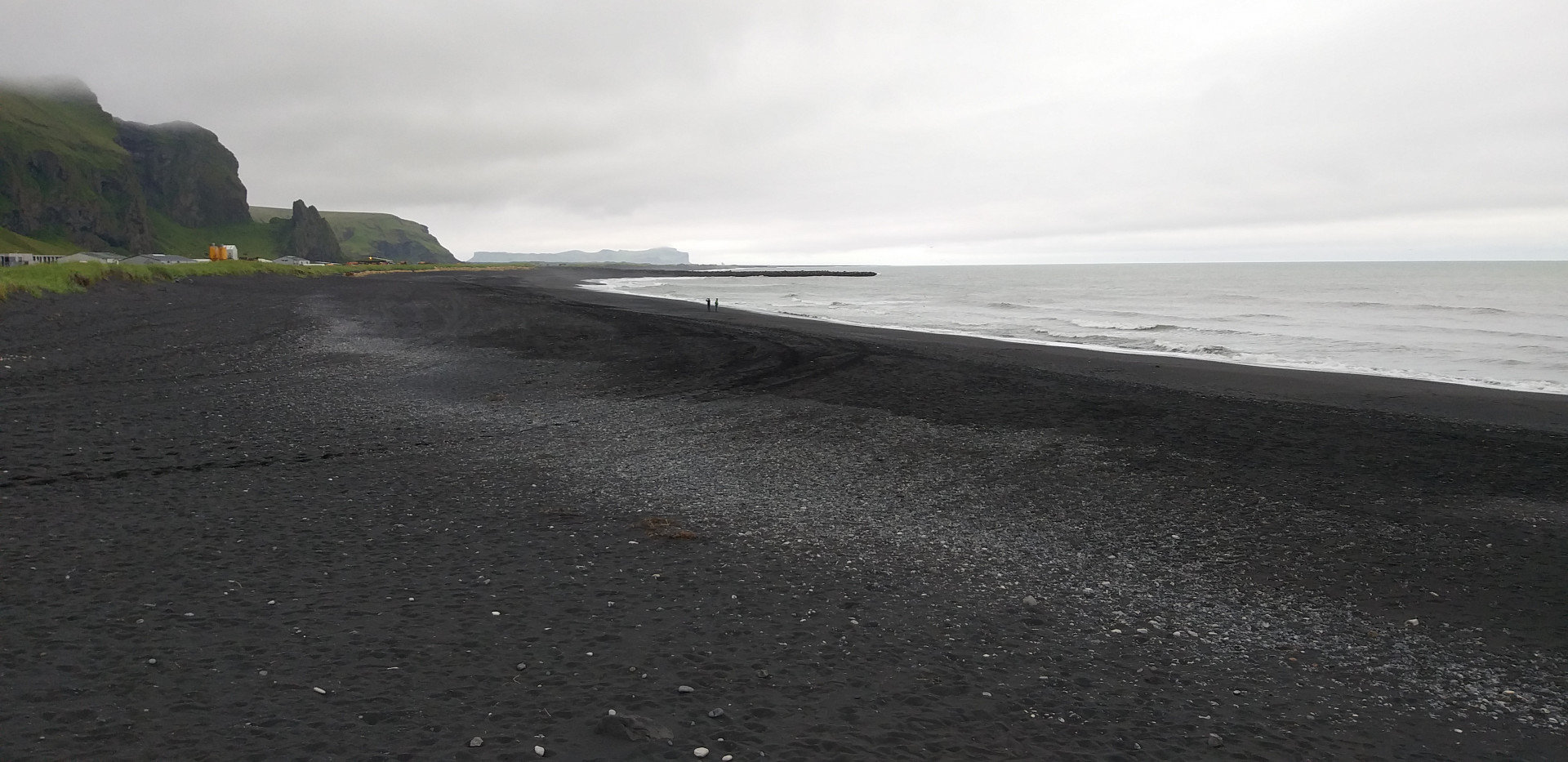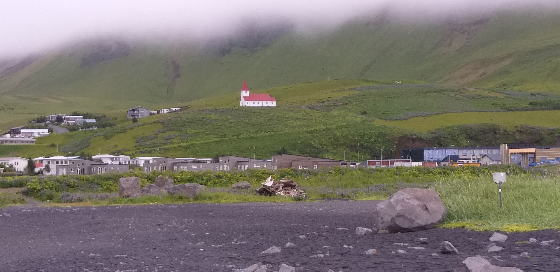 Вик, самая южная деревня в Исландии, расположенная в 180 км к юго-востоку от Рейкьявика, на окружной дороге. Является центром муниципалитета Мирдальсхреппюр и сислы Вестур-Скафтафельссисла, регион Сюдюрланд. Останавливаемся на первый «кемпинговый» ночлег. Оплачиваем место под палатку, стоянка бесплатно. Туалет и кухня столовая тоже входят в стоимость. Если хочешь принять душ нужно оплачивать в автомат, пара минут 100 крон. Холодная вода в избытке. Обосновавшись, и застолбив места палатками, отправляемся на «разведку» в город. Правда продукты у нас были, по пути мы заехали в супермаркет, но решили поужинать в ресторане/кафе. Отлично посидев, отправляемся на знаменитый пляж с черным, вулканическим песком. На сам пляж сил идти уже нет, наслаждаемся морем.