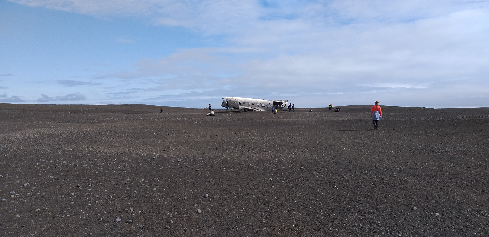 С момента аварии прошло уже более 40 лет, но причина катастрофы и даже ее точная дата покрыты тайной. В Исландских СМИ прошла информация, что авария произошла 21 ноября 1973 года. По данным ВМС США — 24 ноября. От парковки у дороги до места крушения топать 5 км, около 50 минут, по почти голой равнине, усыпанной камнями и мелким гравием. По грунтовке, не по специально утрамбованной для т.н. шатла дороге, идти приятней. Упомянутый шатл возит туристов почти до самого места крушения за 2000 крон (могу ошибаться, не запомнил точную сумму). Утомленные длинным днем, мы встали почти в пять утра, и «просандалив» обозначенные 5 км в одну сторону, мы уже готовы были сдаться и поехать на автобусе обратно. Но сверившись с расписанием, и определив, что он приедет еще не скоро, а мы уже дойдем, двинулись в обратный путь.