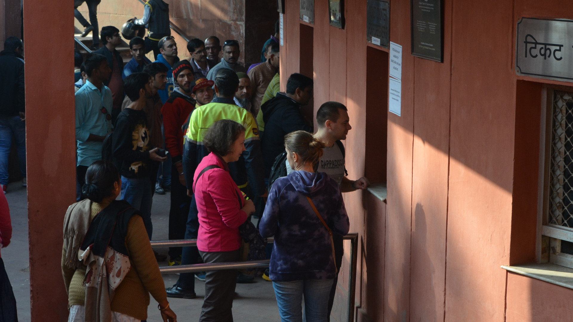 Пробравшись сквозь толпу «тукеров», мы вышли к «Lahori Gate» (Ворота Лахор) и сделали роковую, для наших ног ошибку. В поисках входа в комплекс, мы пошли вправо от ворот, против часовой стрелки, нам показалось так логичным. Прошли мы порядочно долго и вышли к «Delhi Gate» (Ворота Дели), и они оказались выходом, вход был с другой стороны как раз у «Lahori Gate» (Ворота Лахор), нужно было пройти немного влево. Перспектива обратной дороги не радовала, между «Гейтами» сновали «тукеры», но, чтобы на них попасть нужно было отстоять приличную очередь, делать нечего, пошли обратно пешком.