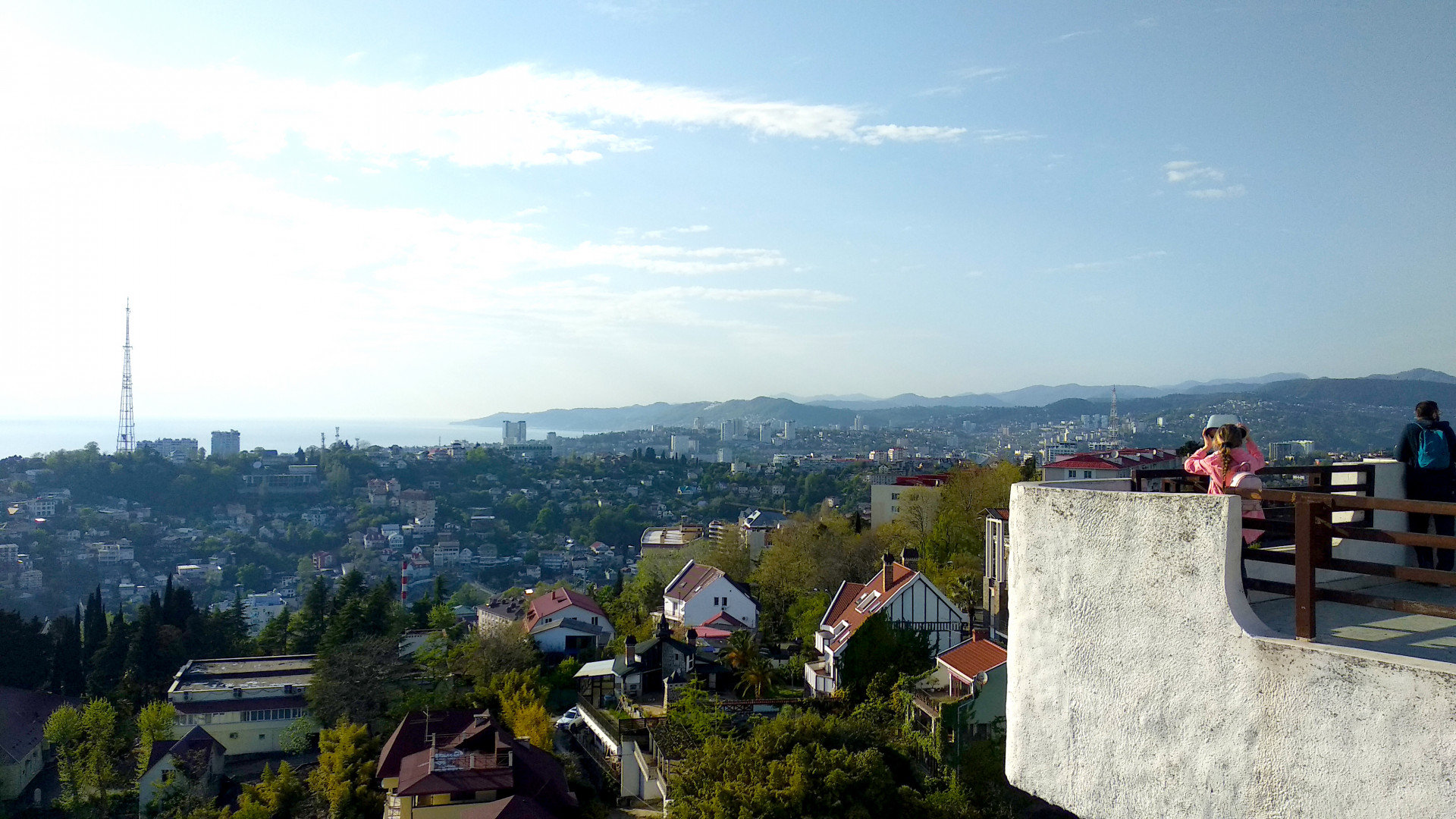 В Сочи из Адлера я приехала на «Ласточке». По Краснодарскому краю из города в город ездила на ней еще несколько раз. «Ласточка» классная. Для тех кто не знает, это электричка которая едет вдоль берега черного моря. Быстро и с удобными мягкими сиденьями. По цене не дорого. Билеты можно купить в интернете. Сильно удобнее чем автобусы.Сочи меня удивил своим ландшафтом. Ногами там передвигаться крайне сложно. Когда вышла из ласточки, посмотрела по карте что до отеля всего 2,5 км и решила что дойду пешком. Это было не лучшее решение. С сумками в гору под 45 градусов. Возле берега еще более менее ровная дорога, но дальше просто дикий ландшафт и отсутствие тротуаров. При этом еще был дождь и итак нелегкий подъем сопровождался водопадами с дороги. После этого по Сочи я передвигалась исключительно на такси.В подтверждение вот вам вид из отеля с 3 этажа %)