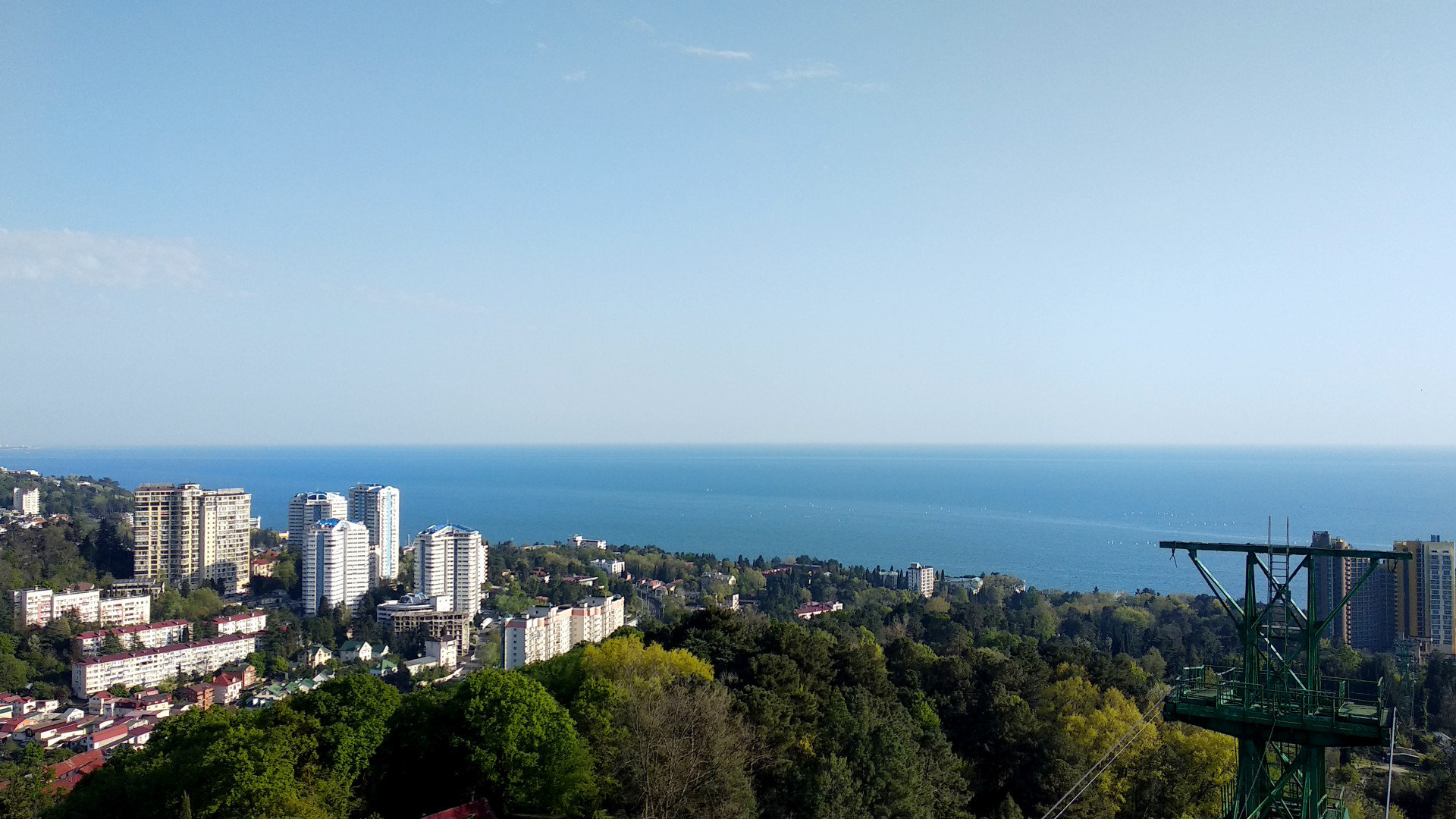 В Сочи я провела всего сутки, но мне этого хватило. Прогулки в такси меня не впечатляют. Как там живут люди без машин я не поняла.Из достопримечательностей посетила Сочинский дендрарий. Вход был от побережья. Села на канатку и поехала на верх над дендрарием. Канатка стоила 350 р. с человека. И вход в сам дендрарий еще 200р. Не очень-то бюджетно. И проезд на канатке всего несколько минут. Окна грязные, видно сквозь них плохо. Просто как транспорт что бы доехать до верха горы, сгодится. А для развлечения ну такое…Канатка кончается смотровой башней. С нее отличный вид на весь Сочи во все стороны.
