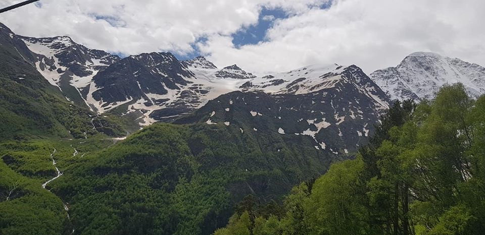 Сели, поехали. 2 часа полусна в автобусе под журчание речи экскурсовода и мы прибываем в ущелье Баксана. Объективно- красота вокруг уже такая, что захватывает дух. Но мы тут не только для красоты. Эта остановка для акклиматизации высотам. В ущелье очень красивая горная речка. Уллу-Тау- Мать Гора, древнейшее место силы Кавказа с выраженной положительной энергетикой, где люди по свидетельствам нашего экскурсовода и отзывам в интернете излечиваются от многих болезней, в том числе от проблем бесплодия. Находится гора на границе с Грузией и является этаким местным Тибетом.