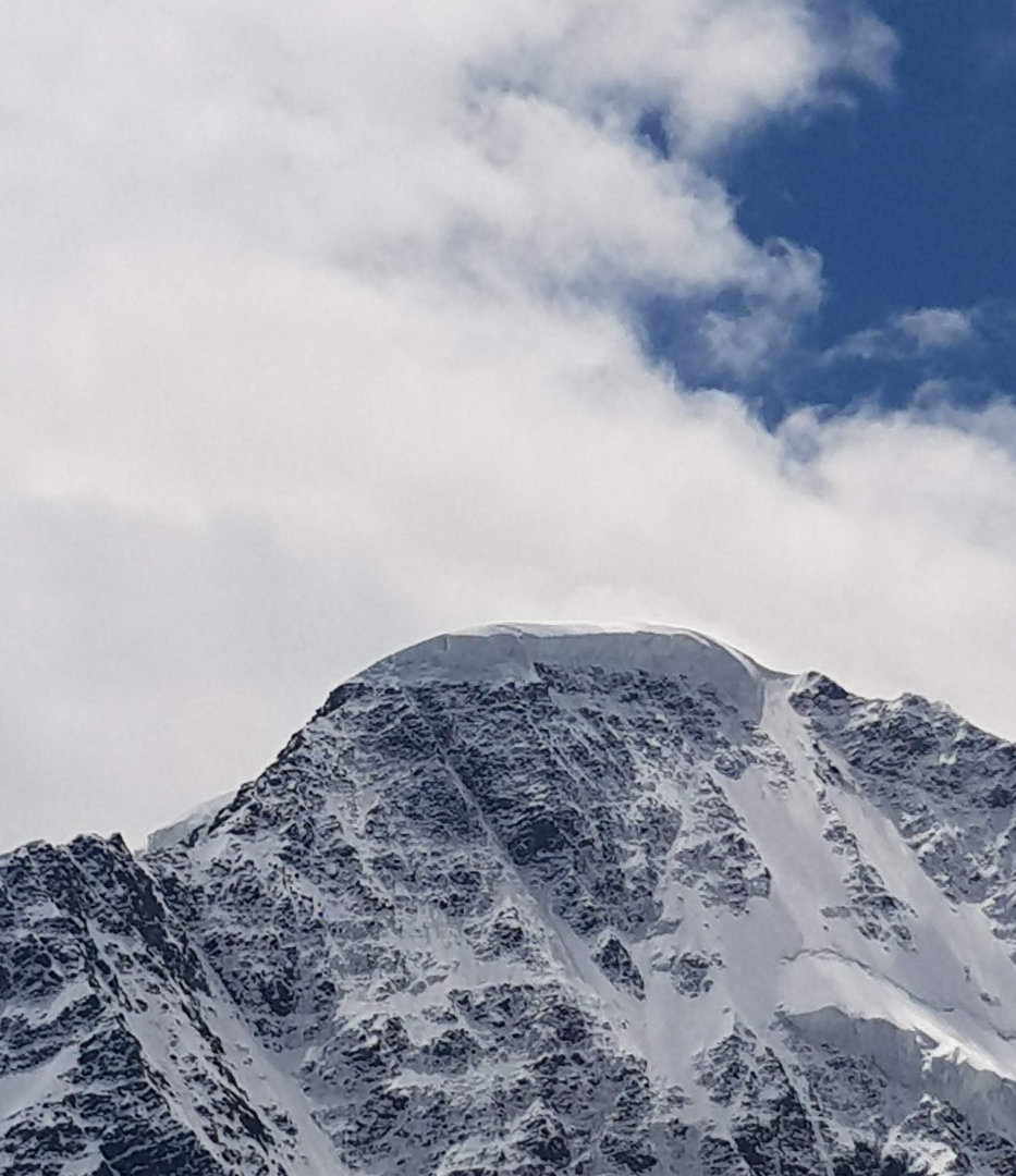 На высоте 3455 метров лежал снег подрумяненный песочком из Сахары. Снег с песком красиво розовел, местами выходило солнце, которое тут же сменялось тучкой, а « ночевала тучка золотая на груди утеса-великана» (с) романтично только за партой. Когда вы с этой тучкой встречаетесь на этой груди, то в вас летит мокрый снег и вообще это весьма холодно.