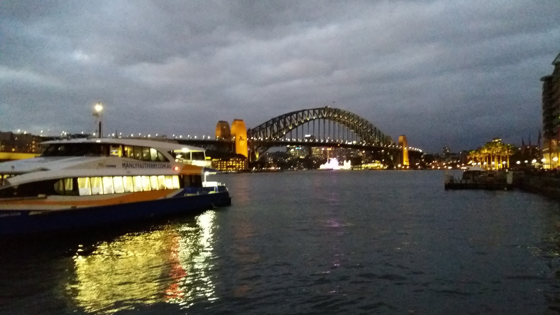 Встретившись с друзьями двинулись по мосту в сторону Сиднейской оперы. Прогулялись по мосту, поужинали где-то в районе George street, прошлись по паромному причалу Сиднейской гавани в сторону здания оперы. На улице быстро стемнело. Было решено отправиться отдыхать, длительный перелет все-таки давал о себе знать, завтра ждал насыщенный приключениями день, первый день в новой, не изведанной, не понятной, но уже такой уютной стране.