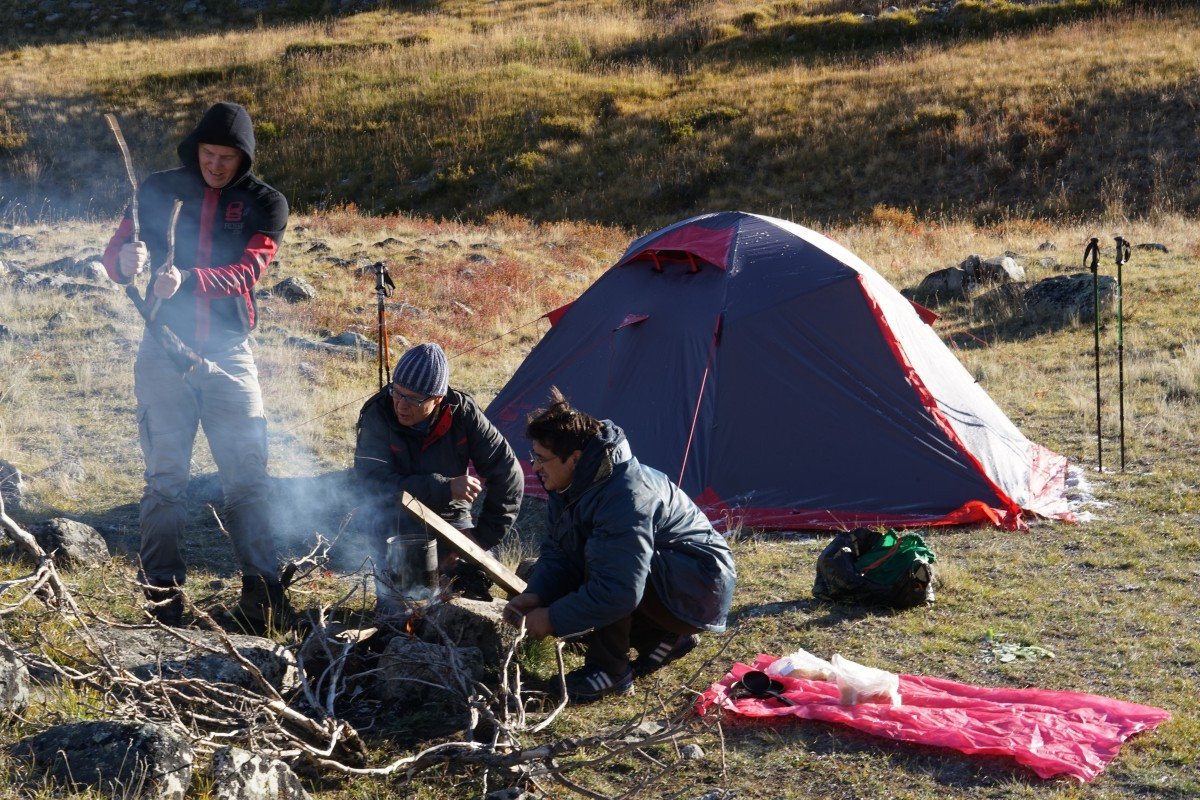 В этот день у нас с мужем серебряная свадьба — 25 лет совместной жизни. По традиции мы отмечаем наш семейный праздник в горах. С нами наш старший сын и наши добрые друзья! Мы находимся на плато Укок, уже очень близко от священных гор Табын-Богдо-Ола! Что еще может быть лучше? Лучше — если бы с нами еще была наша дочь. Но она профессиональная спортсменка и у нее спортивные сборы. Ветер по прежнему холодный и пронизывающий. Снег так и посыпает нас целыми зарядами холода, настойчиво загоняя в палатки. Мы очень быстро ужинаем, выпиваем по стаканчику сока, который я несла ради такого праздника и убегаем в палатки. Не получилось красивого вечера, но ведь это только начало! Этот поход для нас и он будет замечательный!