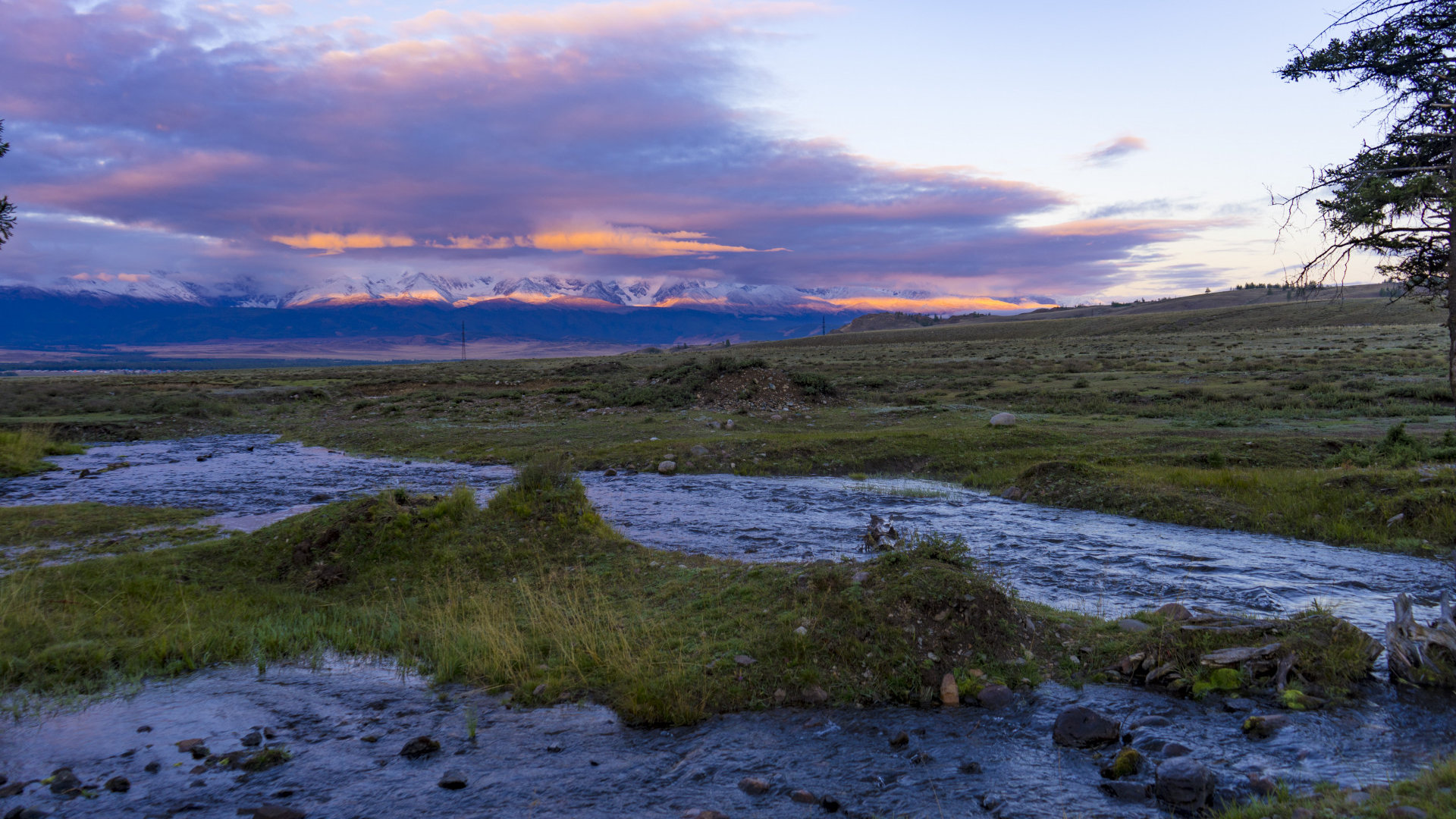 19 августа мы вылетели из Хабаровска в Новосибирск рано утром, потом поехали в Барнаул, где нас уже ждали наши давние друзья. Мы остановились у Игоря. В этот же день предстояло еще развешать продукты по раскладке и распределить по рюкзакам. 20 августа утром выехали из Барнаула, двинулись по известному и такому уже родному Чуйскому тракту. Целый день пути. Остановились на ночевку в своем излюбленном месте близ Курая. Утром был красивый рассвет, я бегала на ближайшую сопку фотать.