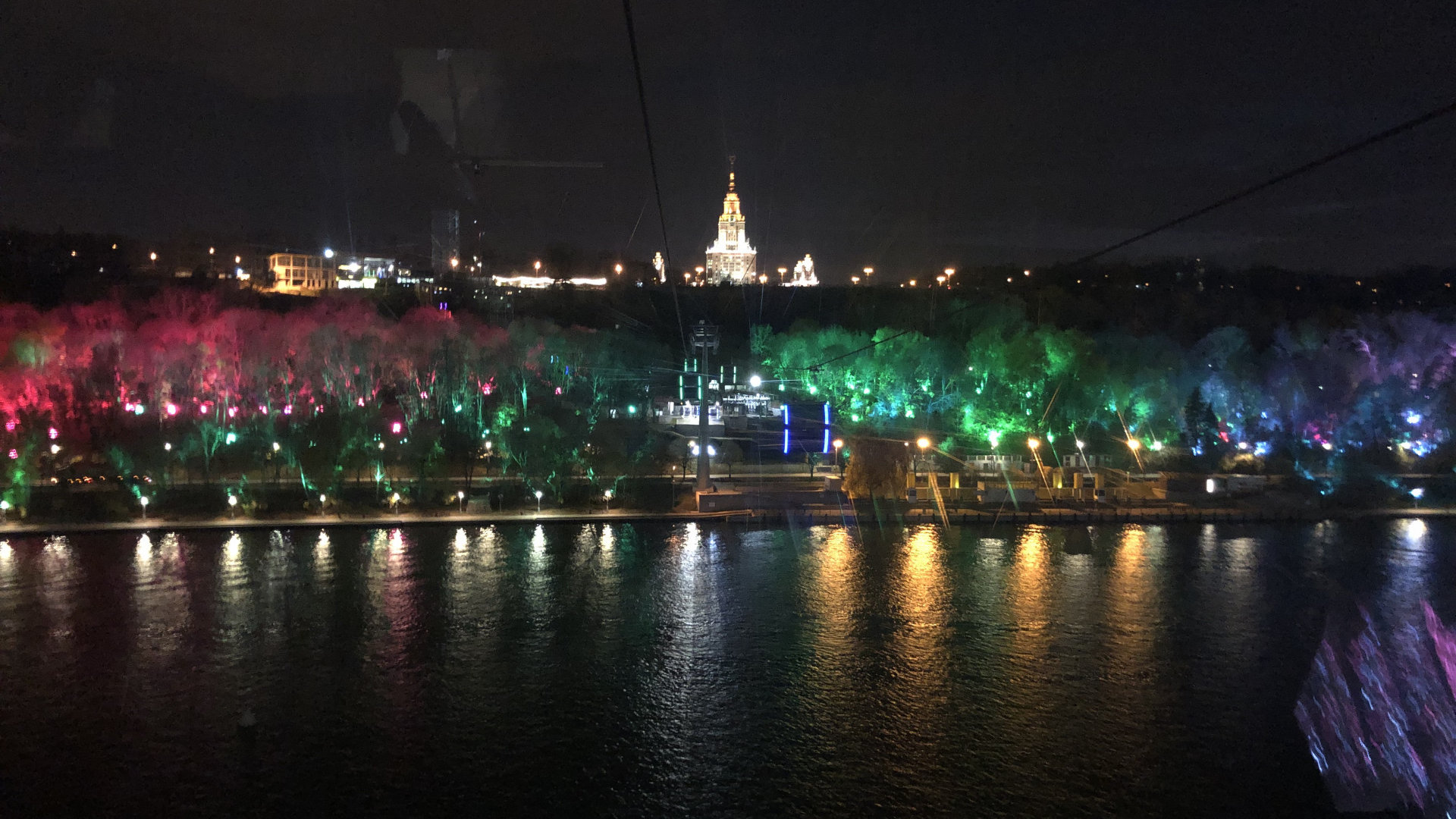 Часто вспоминая поездку в столицу, я осознала, что в основном мы видели ее вечерней. Это не плохо – знакомые места магическим образом преображаются от иллюминации, появляется некая сказочность, а отдельные локации так вообще подобны волшебным декорациям. Только все это – не бутафория: они на самом деле реальны, невероятно прекрасны и впечатляют! Одно из таких мест – канатная дорога на Воробьевых горах. И посетить ее нужно именно в темное время суток.
