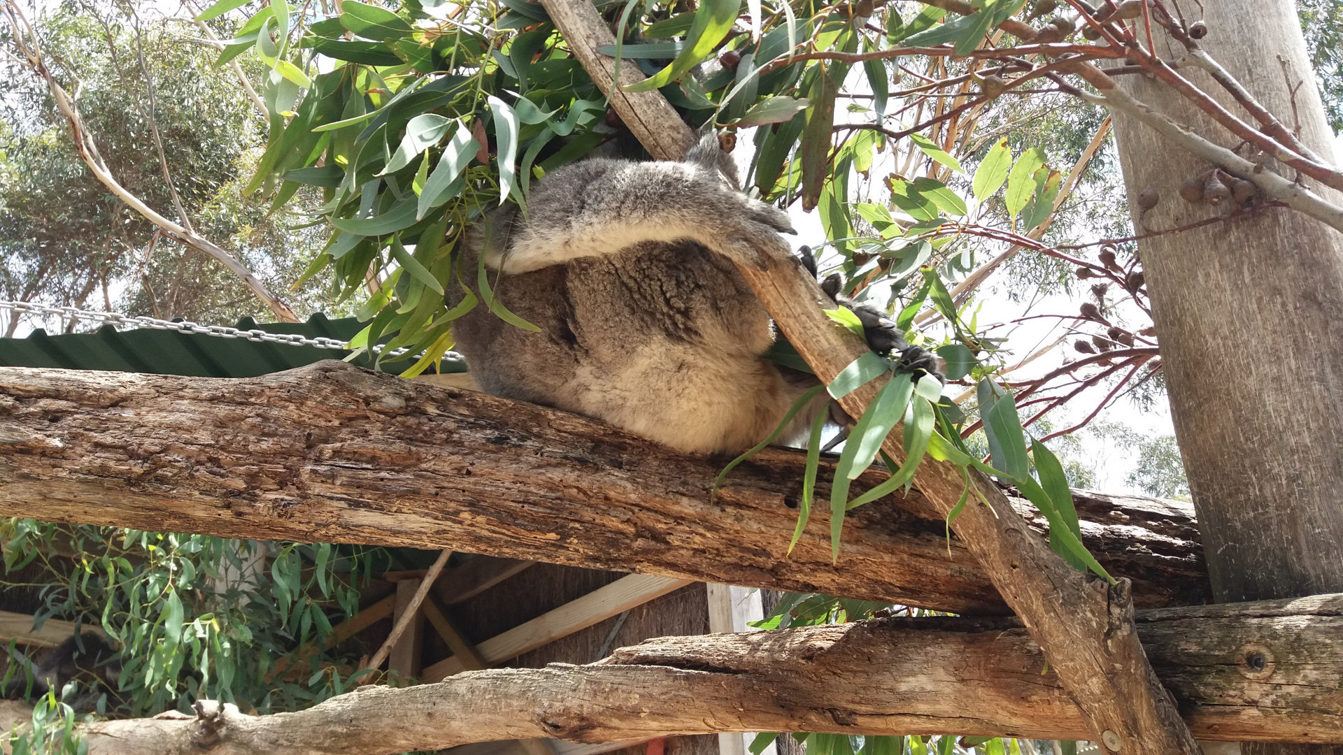 После обеда мы направились сразу в Коала парк, неподалеку от острова Филиппа. Коала парк — это мини зоопарк с несколькими коалами и десятком кенгуру, есть пара собак Динго и один свирепый «тасманский дьявол», которому на развлечение публики за крюк был подвешен кусок дичи, и он его рвал с остервенением.