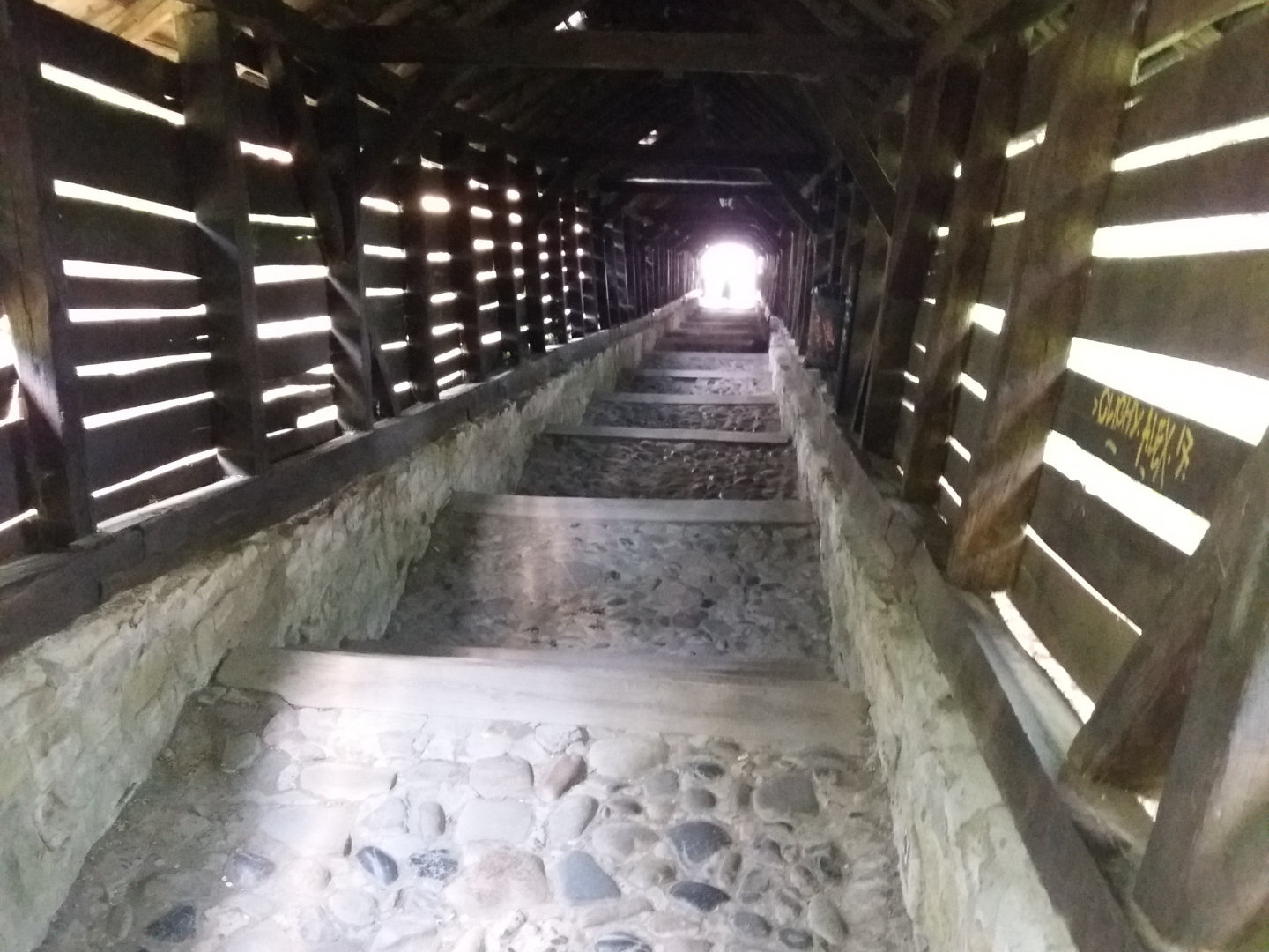 Поднимаемся вверх до цитадели, на нее ведет крытая лестница. Немного погуляв наверху и полюбовавшись на город спускаемся вниз и отправляемся к машине, впереди еще 130 км, а время уже далеко за полдень.
