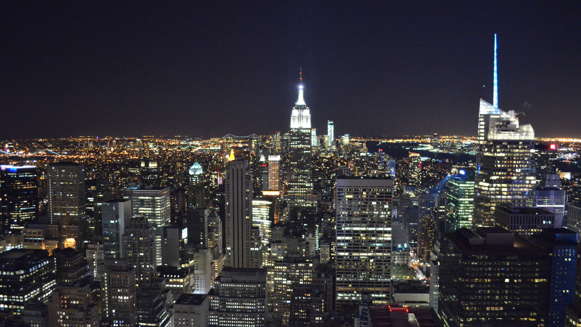 Плюс 1,5 часовой задержки мы увидели ночной Нью-Йорк, минус ужасно жалко времени. Сил далеко идти не осталось. Побродили в округе, полюбовались фонтаном и катком, на который местные жители, пришли провести осенний субботний вечер.