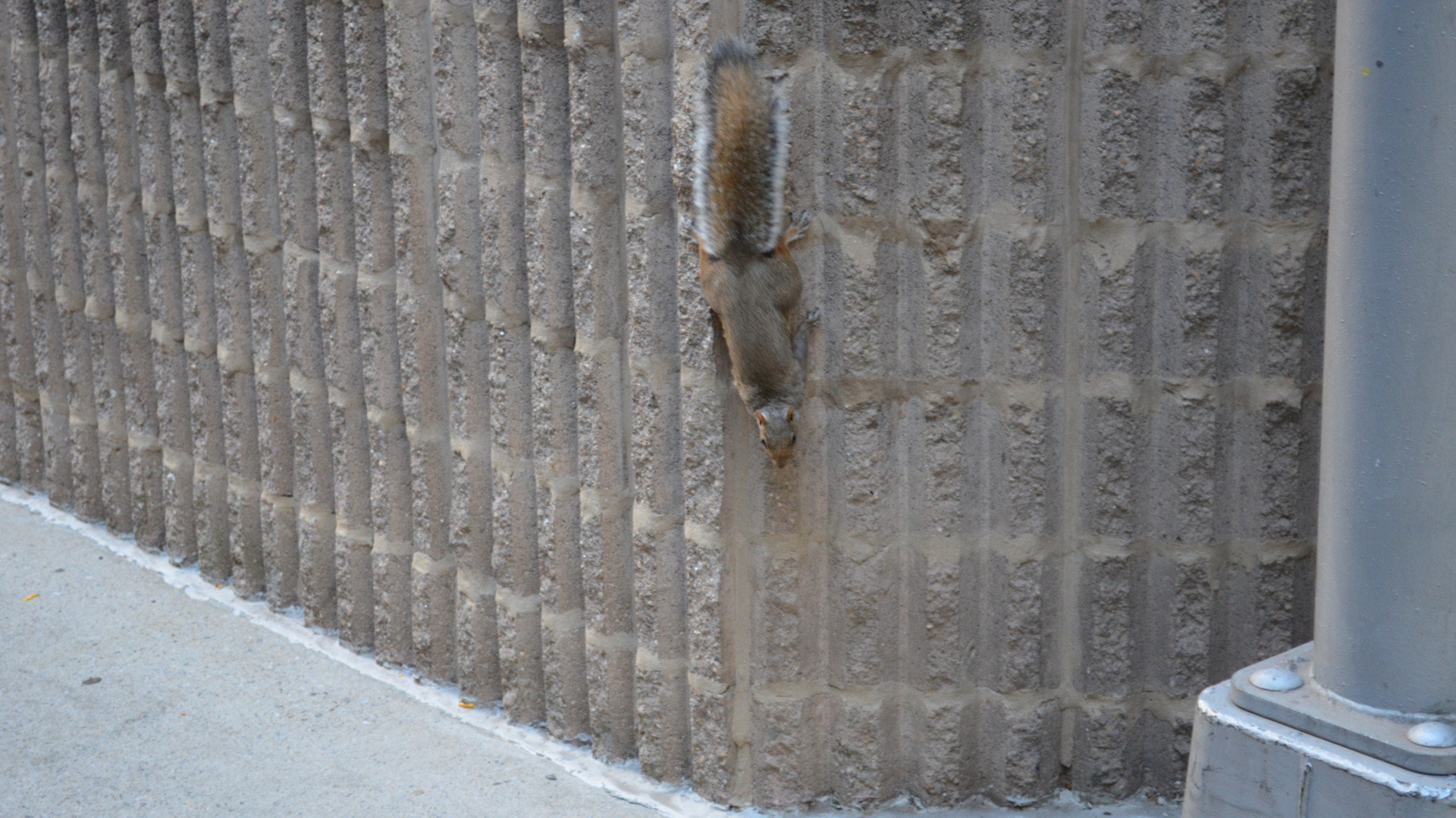 И следующей точкой нас заинтересовавшей, стал Чайнатаун. Необходимо было вернуться к Бруклинскому мосту, район располагался за ним. Каменные джунгли норовили сомкнуть кроны над нашими головами. Улица за улицей, а мы все идем, задрав головы вверх. И вот в этих каменных джунглях, глаз уловил движение. Мы не сразу поверили своим глазам. Грызун с мохнатым хвостом спускался по вертикальной отвесной стене. Оборзевшими глазенками разглядывая нас на предмет наличия съестного. Дал себя сфотографировать и двинулся по стене уже в горизонтальном направлении.