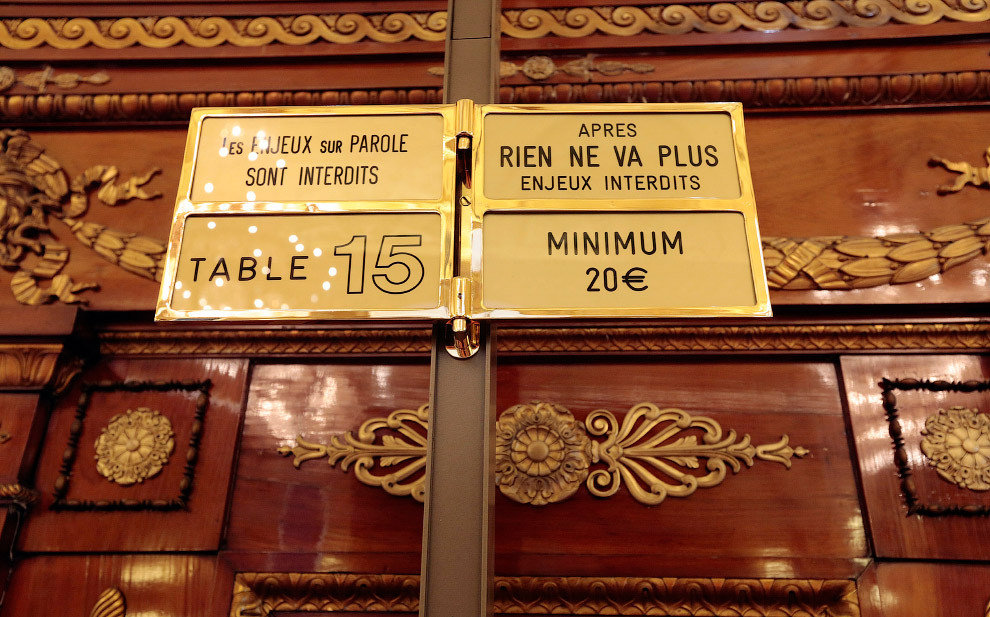 Информационные таблички для игроков с минимальными ставками. Казино приносят огромные доходы княжеству, но гражданам Монако не разрешается играть на деньги и посещать эти заведения, может поэтому все- от крупье до охранников, какие то неприветливые.