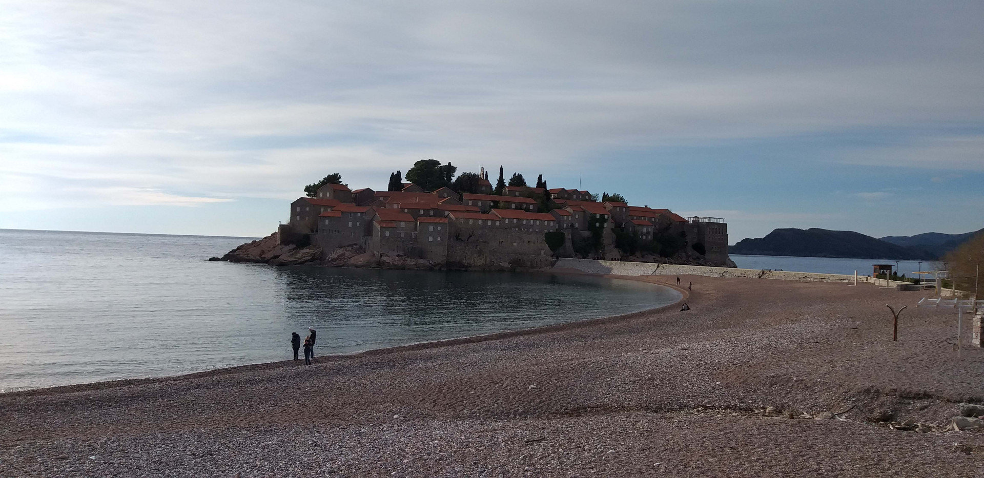 Проезжаем до острова Свети-Стефан (Свети Стефан), он же курорт в Черногории, расположенный на побережье Адриатического моря, на Будванской ривьере, в пяти километрах к юго-востоку от города Будвы. Перешеек между сушей и островом природный, появился в результате намыва гравия слоями. Очень редкое природное явление. Остров закрыт для посещения лицами, не являющимися гостями отеля, поэтому любуемся с берега.