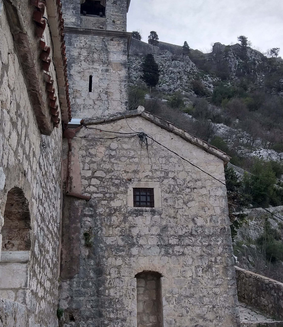 Утром поднимаемся к крепости Святого Иоанна. Начало Старой крепостной дороги обозначено указателем и крутая лестница вверх, мимо жилых домов. Крепостные стены опоясывают примыкающий к горам Котор со всех сторон, поднимаясь по скалам на самый верх скалистого холма и соединяя таким образом город с верхней венецианской (времен Венецианской республики), крепостью Сан Джованни (Святого Иоанна). Крепость расположена на высоте 280 метров над уровнем моря. Из старого города наверх ведет мощеная тропа, по пути путников встречает Церковь Богородицы Здравие. По пути и в самой крепости также встречают «местные» жители – коты. Сверху открывается замечательный вид на Которский залив и сам город. Спускаемся вниз.
