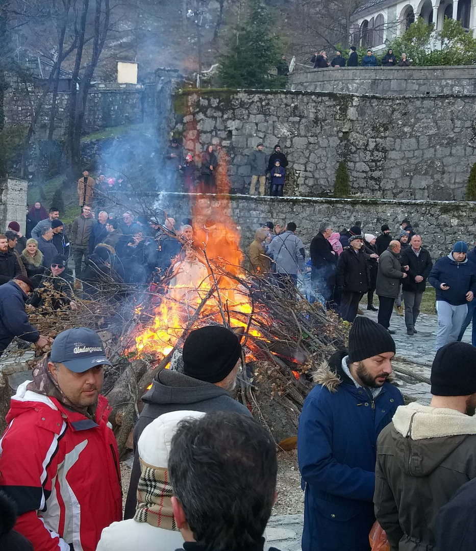 Согласно конституции Черногории, Цетине является одной из «столиц» страны наряду с Подгорицей, в ней располагается официальная резиденция президента республики и министерство культуры Черногории. Паркуем машину на огромной парковке перед парком и идем к большому храму, мы попадаем в самый разгар празднования. Звучать поздравительные речи, детский хор и массовое сжигание тех самых дубовых веток. Время обеда давно прошло, но наши попытки найти место тщетны. Все заведения «общепита» и бары забиты празднующими горожанами. У нас конечно это невозможно представить, чтобы так отмечали рождественские праздники.