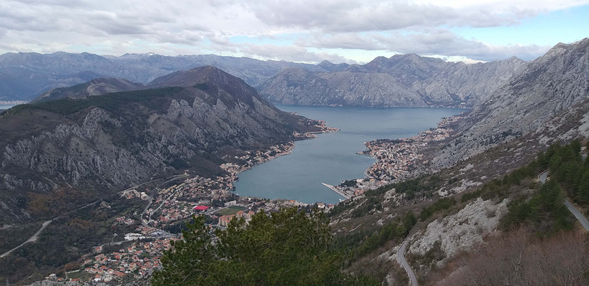 Сегодня наш путь лежит еще в Национальный парк Ловчен, по имени расположенной здесь горы. Основная цель посетить мавзолей Негоша. Гробница последнего духовного правителя Черногории, митрополита Петра II Петровича-Негоша. Мавзолей расположен на вершине горы Ловчен. Он был построен на рубеже 60-х — 70-х годов XX века на месте православной часовни. В 1845 году Петр II Петрович-Негош выразил желание быть после его смерти похороненным в часовне, основанной им на горе Ловчен. Долго петляем по горным серпантинам, нам нравятся серпантины еще со времен поездки в Норвегию. В горах заметно больше снега, нужно быть аккуратным за рулем, резина не приспособлена для езды по такой поверхности, в багажнике есть комплект цепей. Подъезжаем к подножию горы Ловчен и понимаем, что подняться, даже с цепями будет рискованно, дорога сильно укатана, снег плотный, ограждений нет, решаем не рисковать.