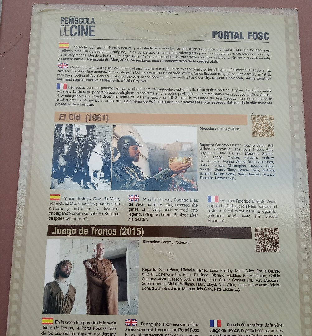 Пеньискола (Peñíscola). Курортный город, как и Марина Дор, но это место многократно интереснее и просто великолепно!! Как же я люблю такое сочетание, когда наряду с современными отелями в городе есть историческое место – такой центр, вокруг которого все и закручено. Чудесные улочки и дома, исполненные в гамме насыщенного синего и белого цветов. Очень мило и уютно и было здорово познакомиться с городом, хоть и бегло. А крепость, служащая не только историческим и архитектурным памятником, но и местом киносъемок! Буквально каждый поворот отмечен «здесь снимали то-то и то-то». Так мы и набрели на памятную доску про «Игру престолов». Дивное место в целом!