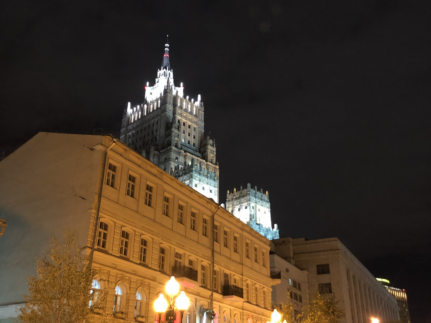 Выйдя на Смоленскую площадь, вы увидите одну из сталинских высоток – здание МИДа. Любоваться им лучше с противоположной стороны. Что, собственно, я и сделала.