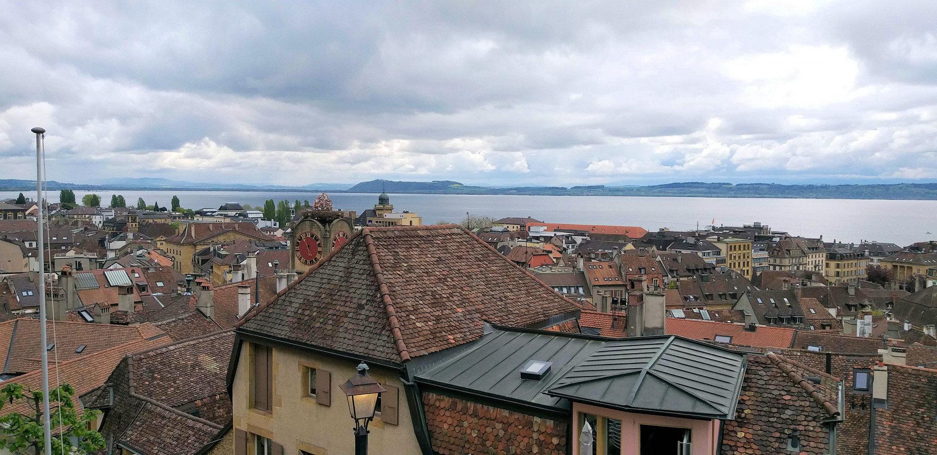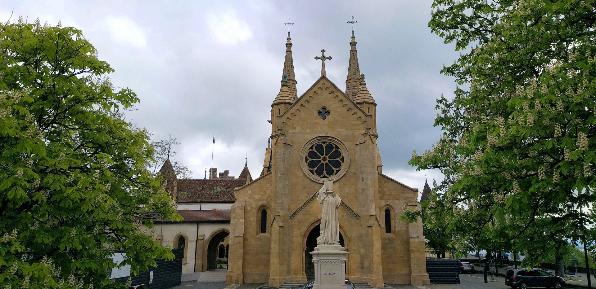 Нёвшатель всего лишь промежуточная точка на маршруте, у нас сегодня насыщенный день. Сразу решаем подняться к замку Neuchatel Castle (Chateau de Neuchatel). Поднимаемся со стороны Реформаторской церкви (La collegiale protestante Notre-Dame de Neuchatel). Прогуливаемся по двору, заглядываем внутрь. То, что замок находится за церковью, понимаем не сразу. Спускаемся с холма в город, у нас остается не решеным вопрос с покупкой картриджей для газовых горелок. Заглядываем в магазины спорттоваров по пути, ничего нет, решаем по пути в Берн заехать в ближайший Декатлон. Не спеша доходим до Невшательского озера (Lac de Neuchatel). Погуляв по набережной Остервальд возвращаемся к автомобилю.