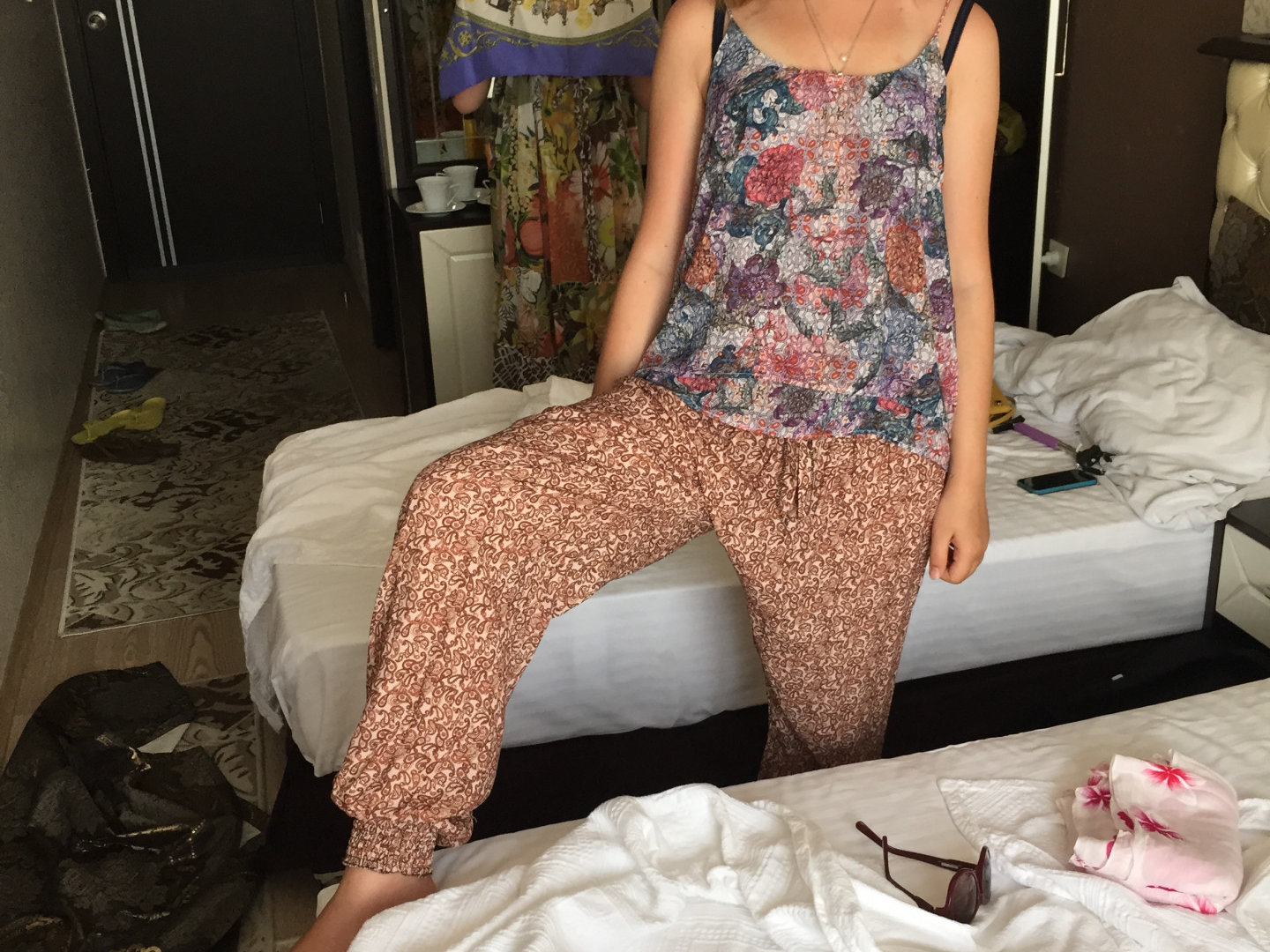 «У меня есть два длинных сарафана и пара платков. Хорошо, что я сгорела накануне"- успела подумать я , пока Ло не купила, молча, первые длинные шаровары, которые продавались по пути.