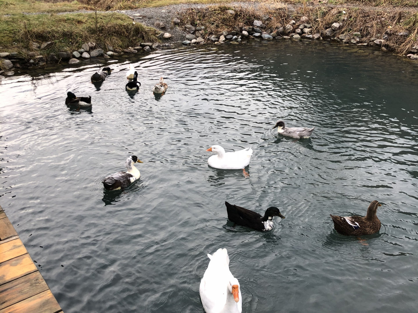 На территории маральника есть пруд с уточками, сказали, что тут выращивают рыбу. В целом прогулка получается довольно интересной, в высокий турсезон тут работает магазин с продукцией, которую производит маральник, и сувенирная лавка.