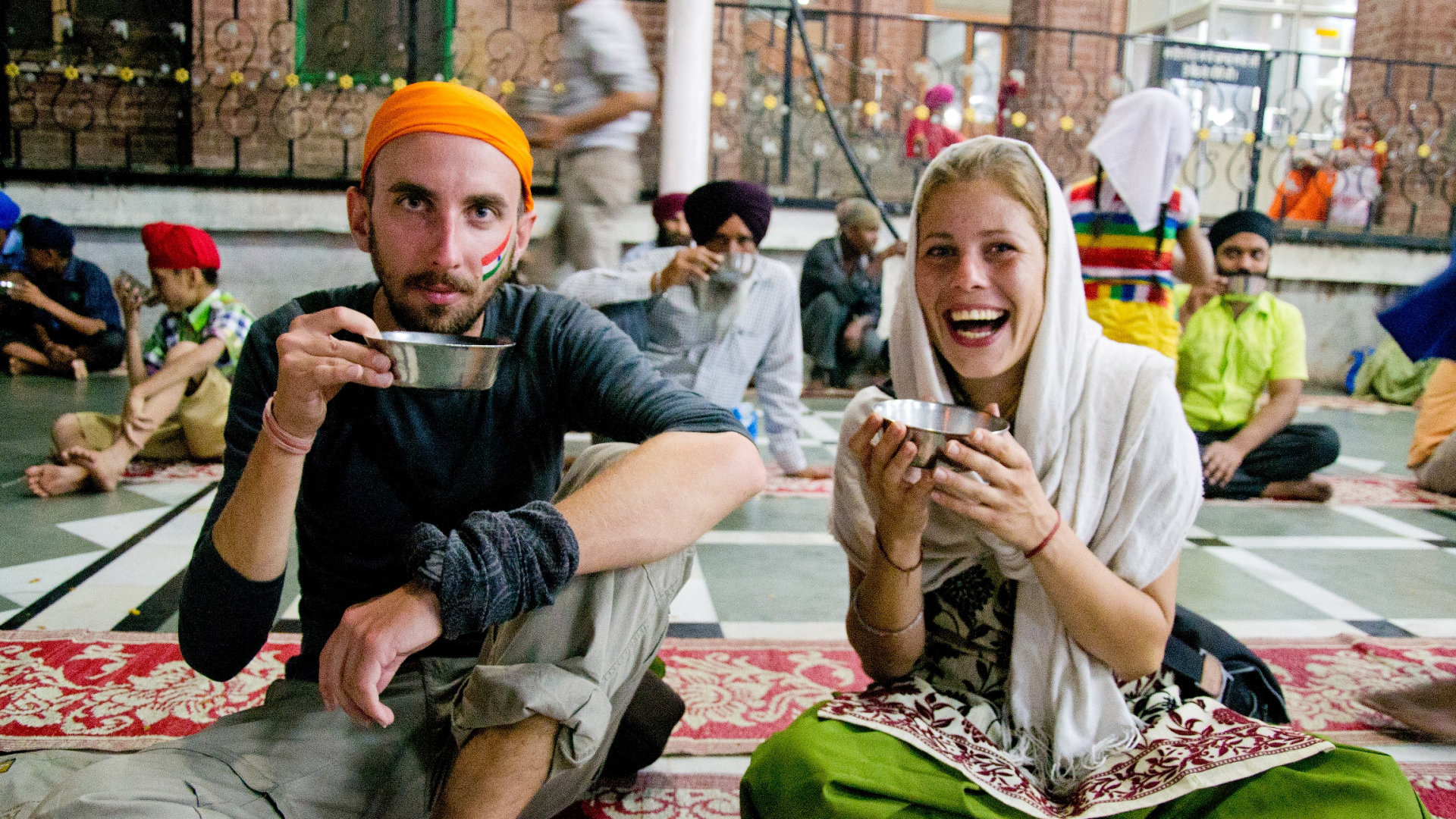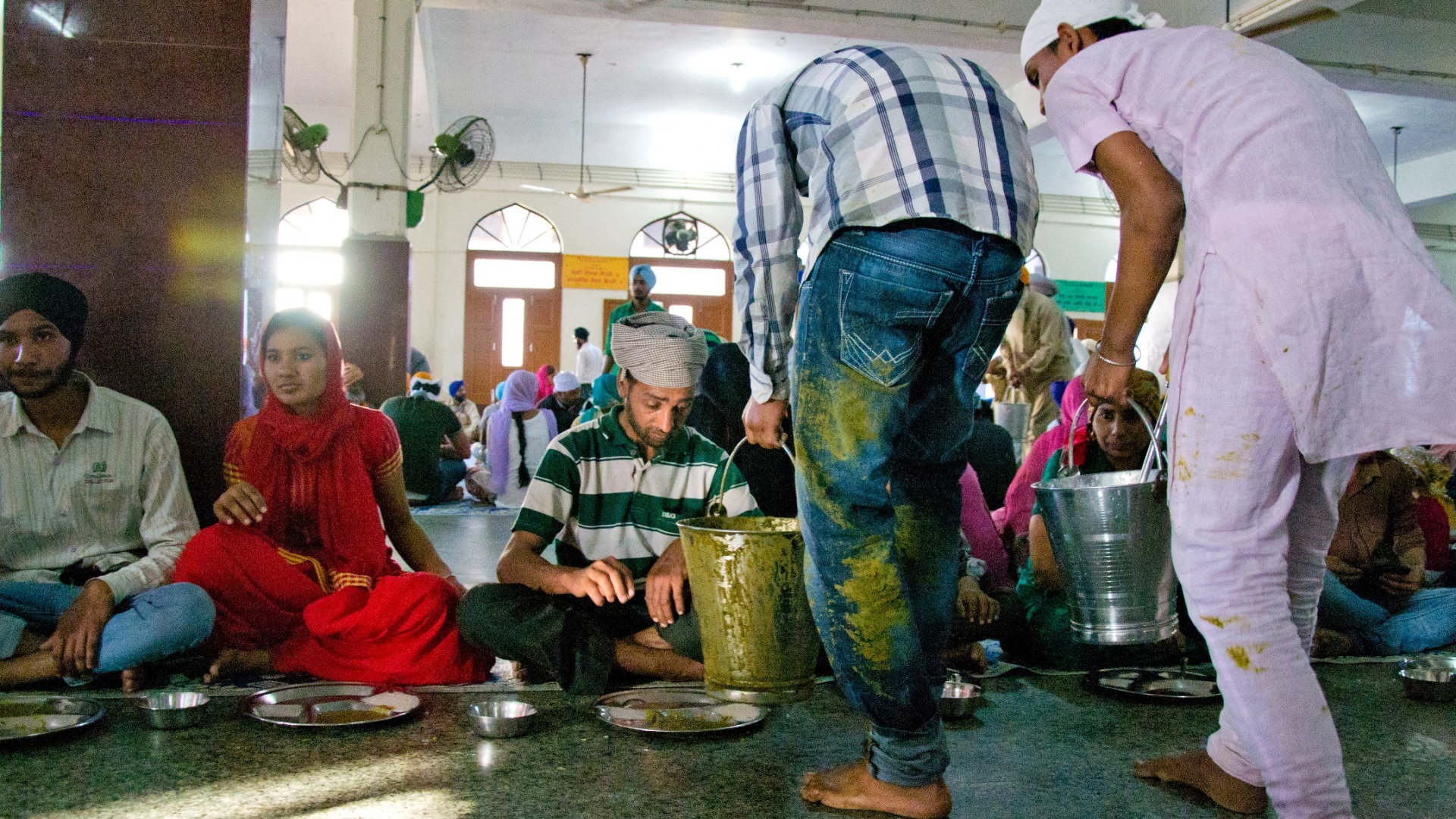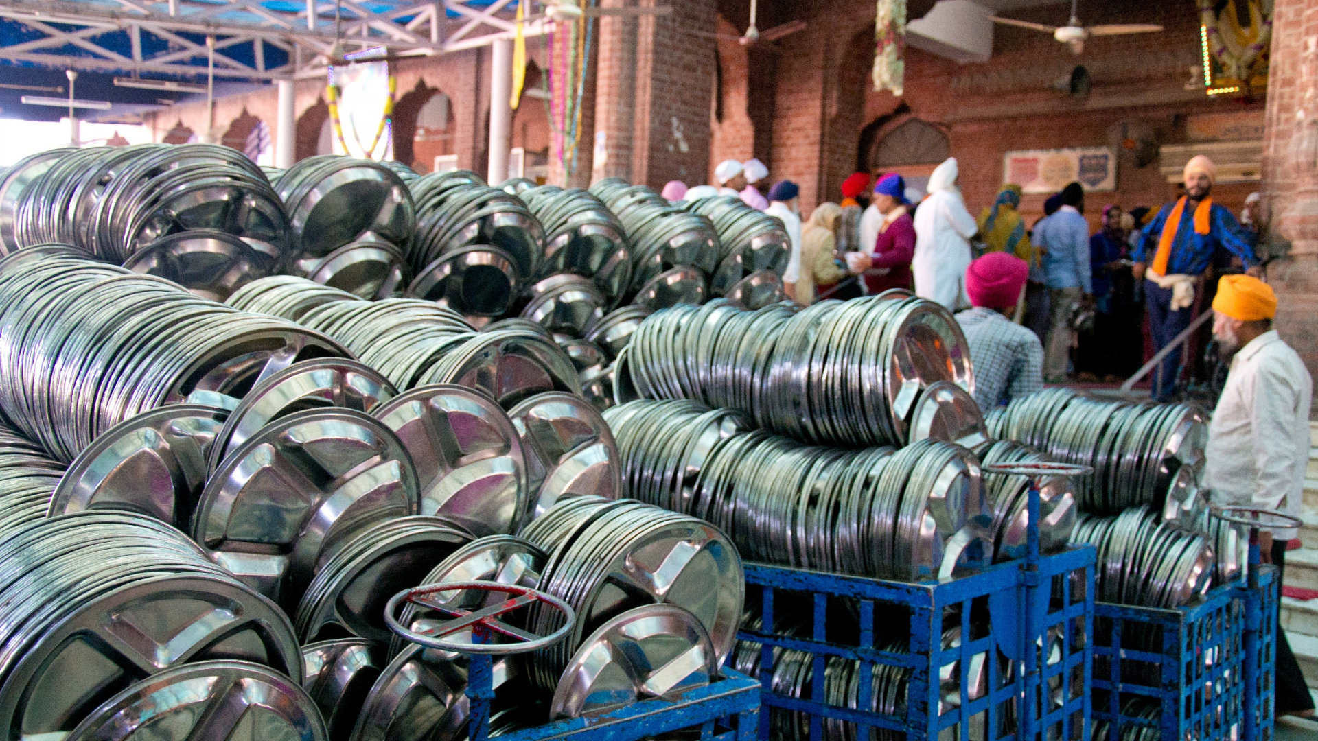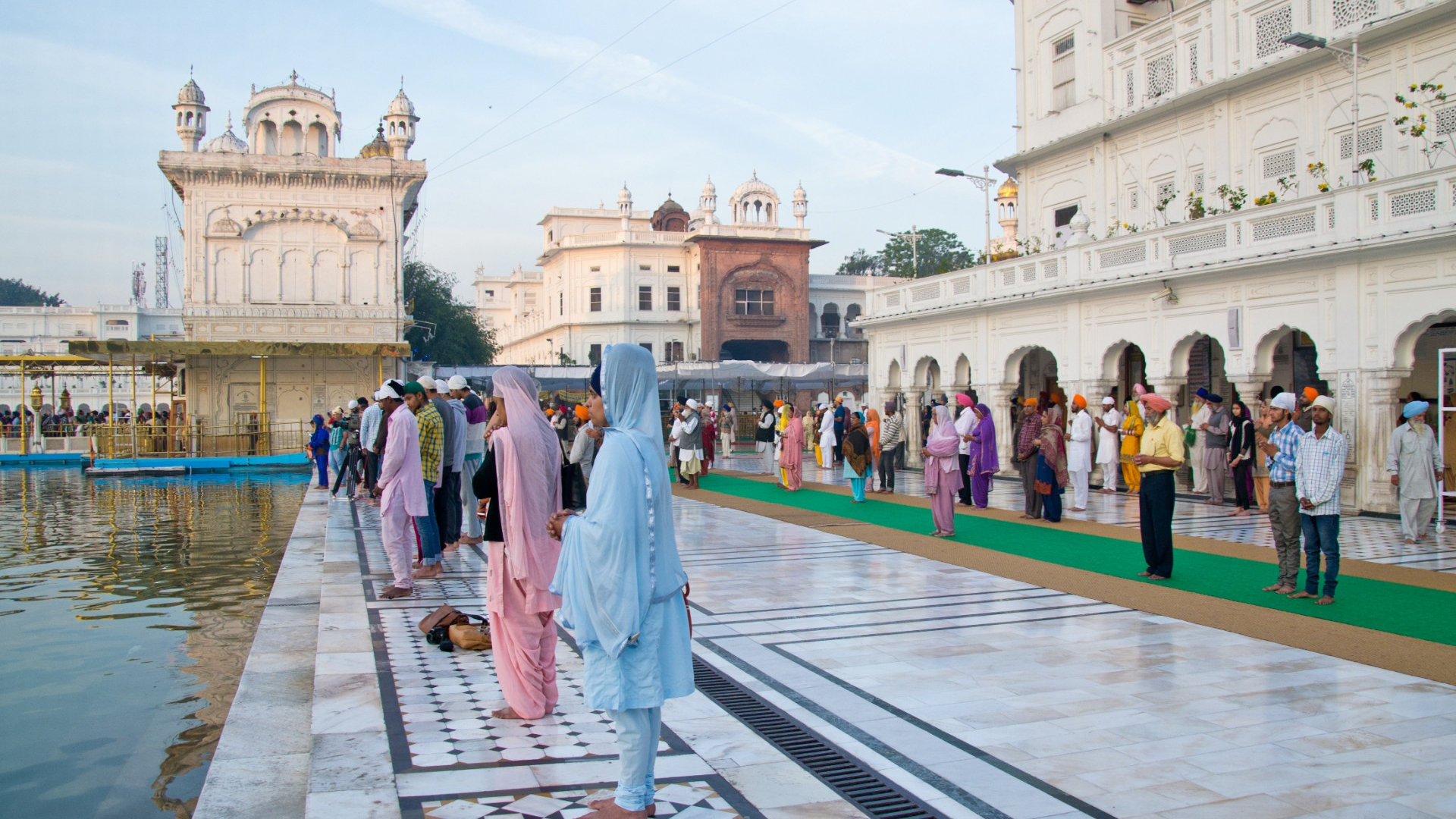 Перед тем, как зайти в сикхский храм, нужно снять обувь и омыть ступни в проточной воде, и не забыть покрыть голову — косынки свободно лежат в корзинах, если своей нет.