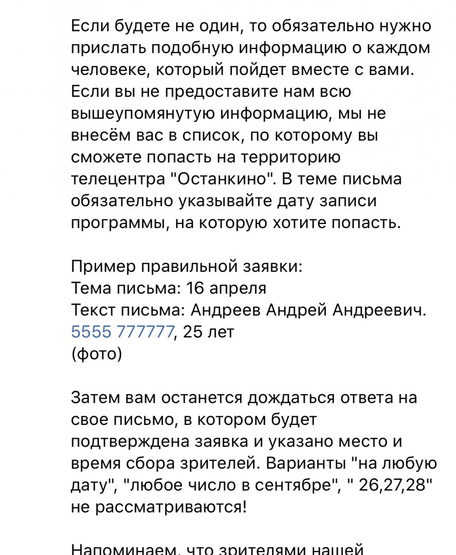 Гарантии, что вы попадете, нет, но надежда, как говорится, умирает последней. Обычно на каждую запись требуется порядка 100 человек, и если вы успели в первые минуты выхода анонса отправить свою заявку – ваши шансы возрастают. Почему могут не взять?