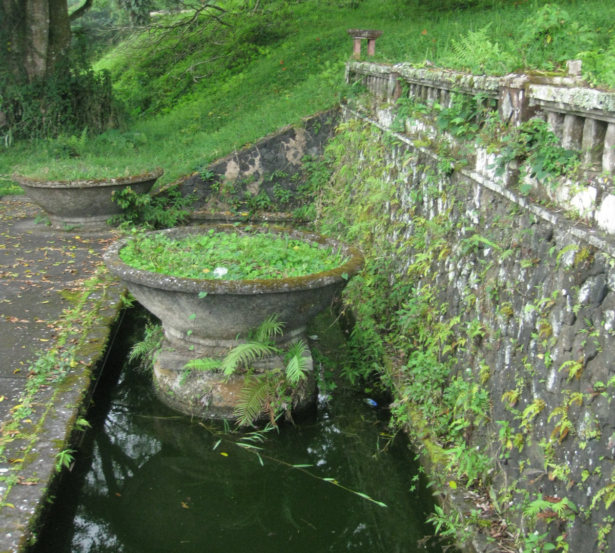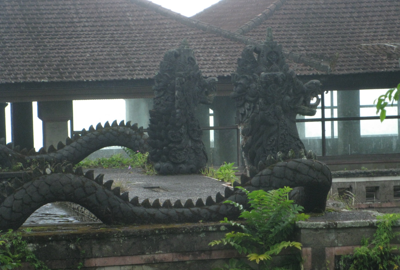 Резные барельефы украшают стены, а на входе в сад, вдоль лестниц замерли каменные драконы.