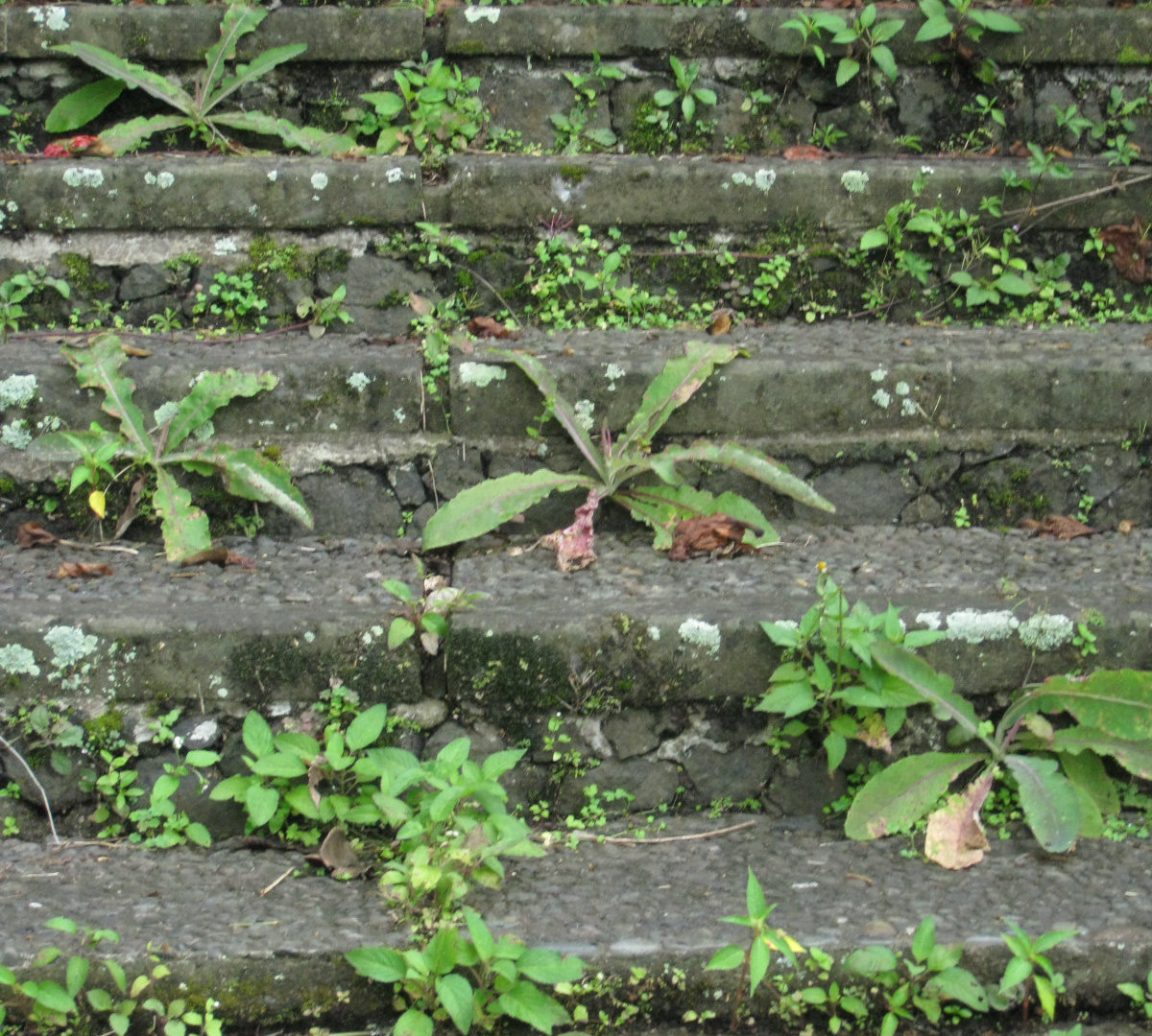 Мы с Юрой сфотографировали красный цветок и положили его на ступеньку каменной лестницы, уходящей куда-то вверх.