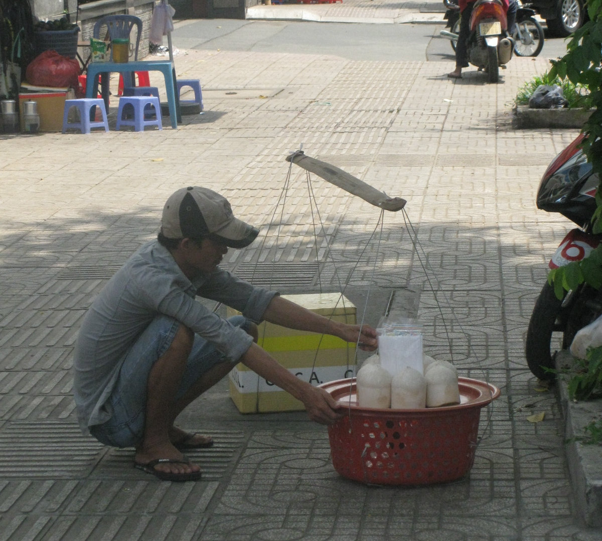 Понятно, что уличная торговля не предполагает особой стерильности, но махнуть рукой на это я не могу. На Бали я иногда покупаю готовую еду на ночном рынке, но там многое из того, что бы мне не хотелось увидеть, скрывает темнота:) И лучше всегда брать еду на вынос, поскольку есть её из пакета всё же приятнее и безопаснее, чем из плохо помытой пластиковой тарелки.