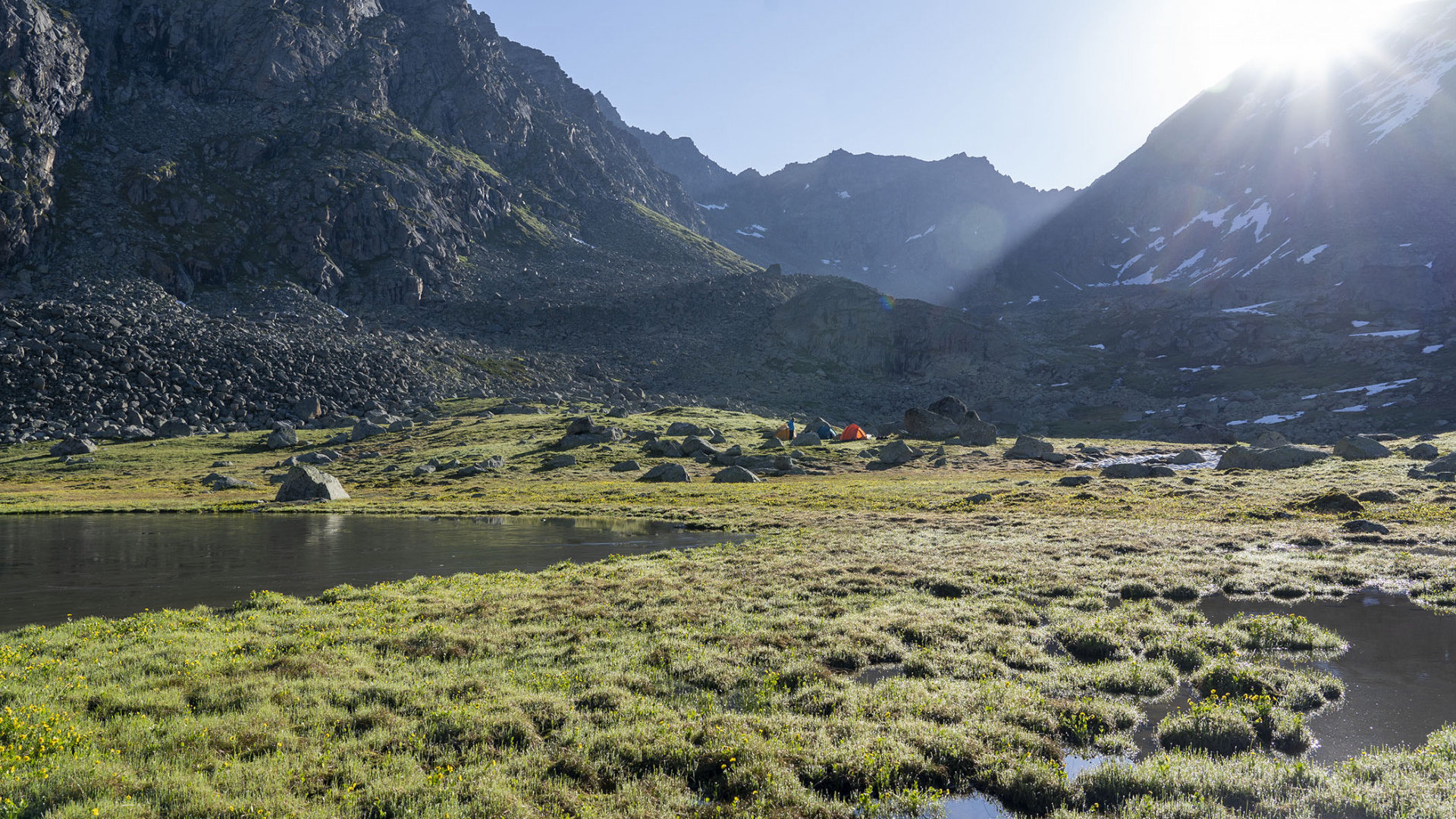 Стоянка в верховьях Абиака на фоне нашего перевала