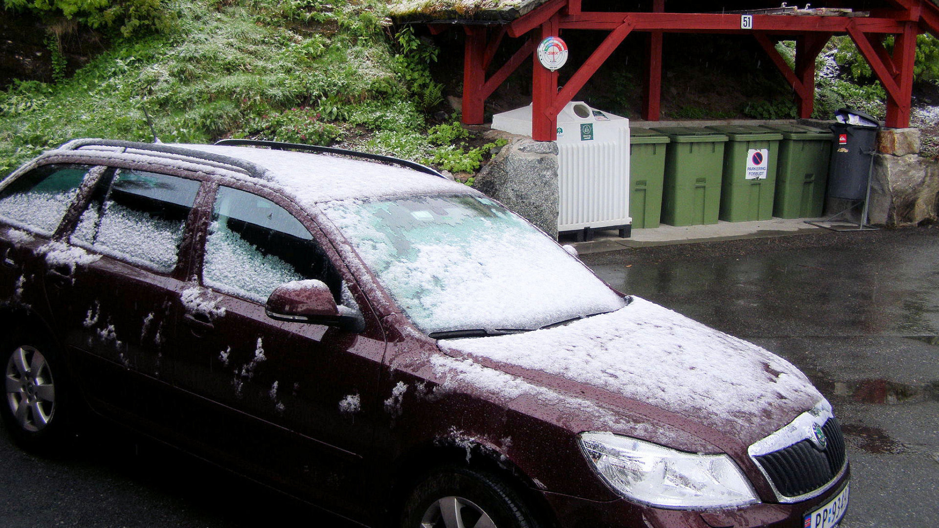 Заехав в один из этого множества туннелей, он выкинул нас в снежную страну, как будто перенеся из лета в зиму. Всех ослепило. Красота-то какая. Горы все в снегу. Срочно ищем карман на дороге, чтобы остановиться.