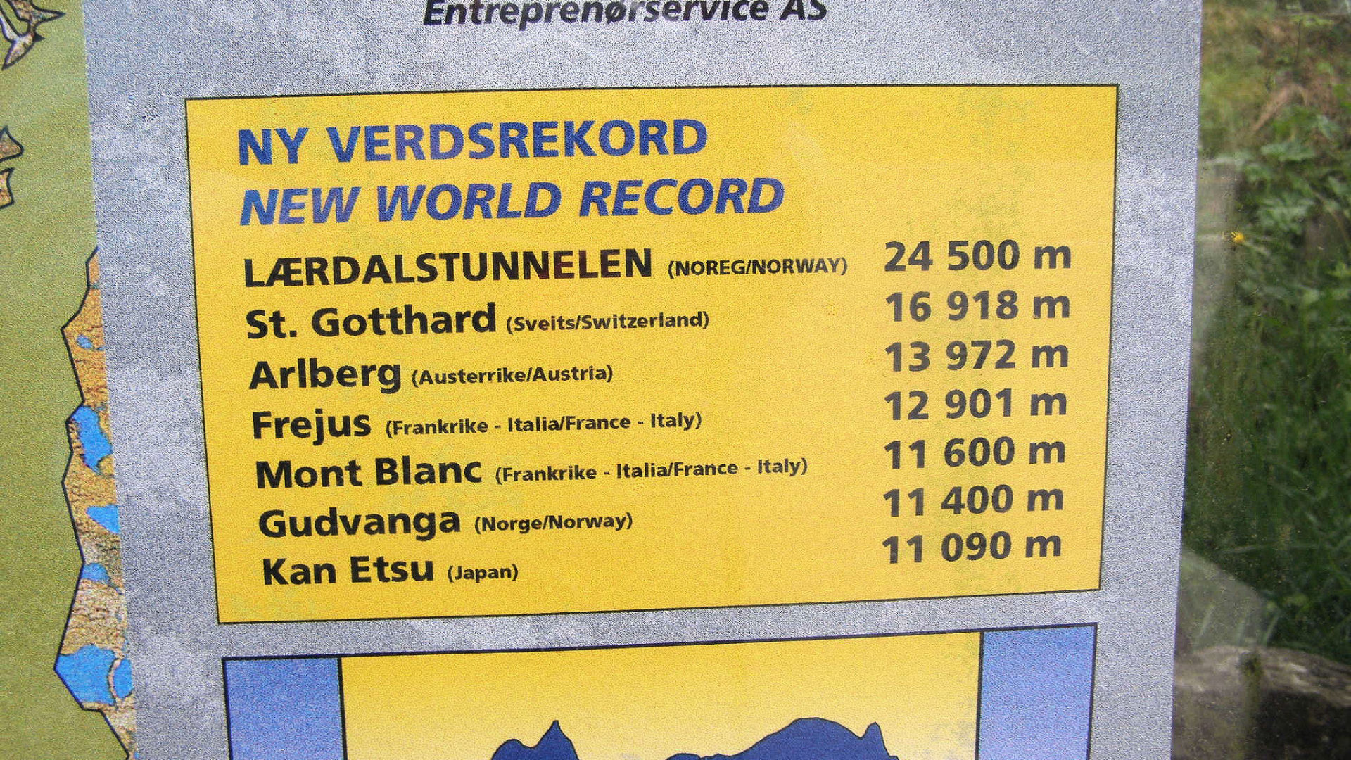 Итак, двигаясь по Е16 мы доехали до стенда, на котором значилось, что скоро будет въезд в самый длинный автомобильный туннель в мире.