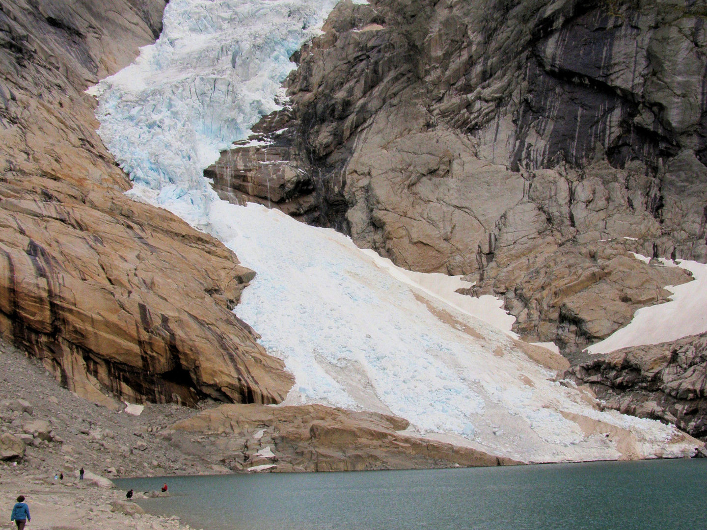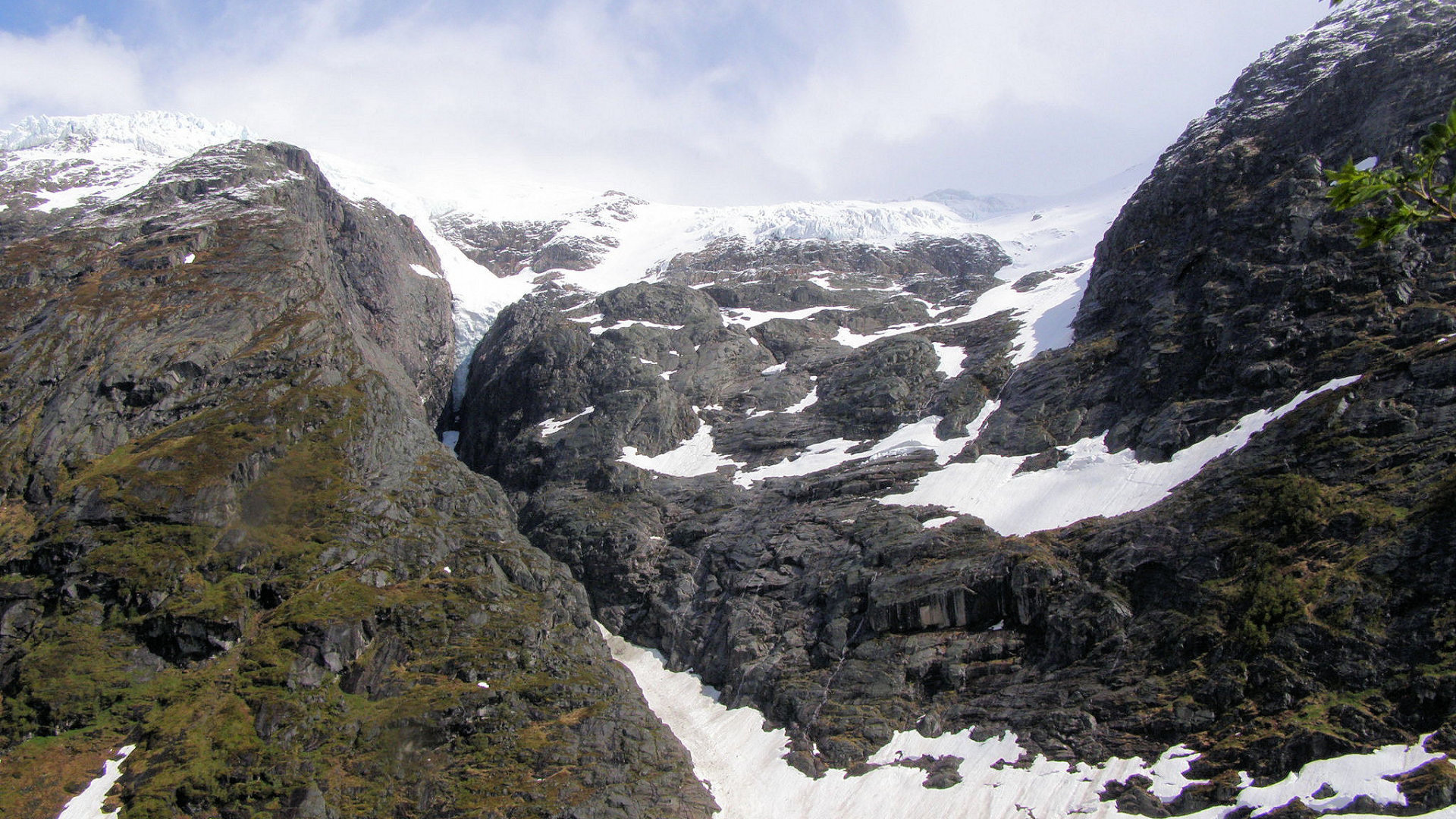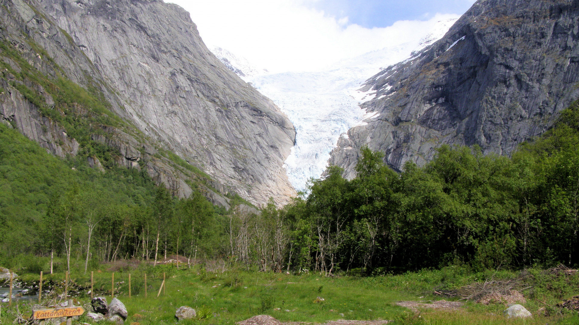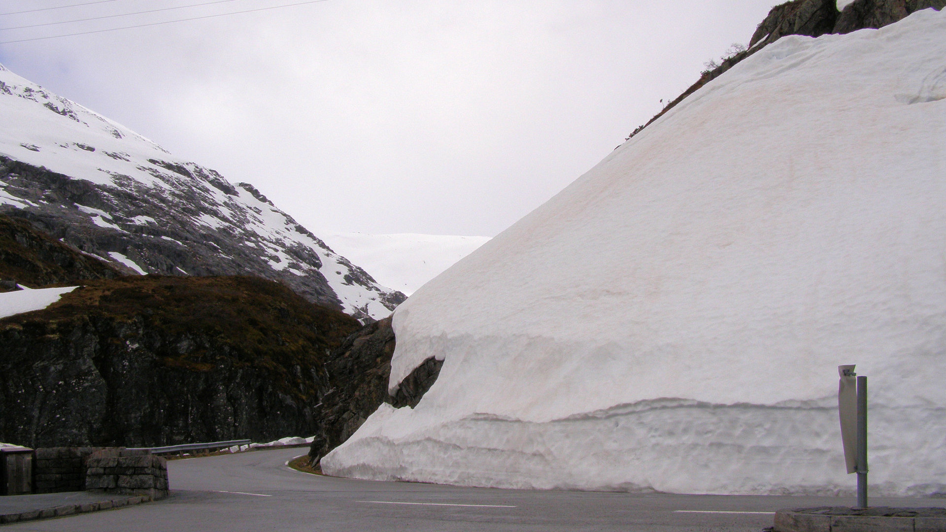 Встаем на тропу, привычные красные метки. Камни и снег. Впереди ничего хорошего. Но сразу развернуться не можем, как же без борьбы. Всё-таки, он нас не подпускает, дорога уходит под весенний рыхлый мокрый снег. Пошли обратно, грустно. Нет мы так не играем, ледник нужен. Немного разозлились, на себя, друг на друга. Выхода нет, поехали в ваш Гейрангер. Встаем на маршрут, едем молча, без настрое-ния, день в пустую. Ничего нового. Скучно. Проехав достаточно начинают появляться указатели, что скоро будет ледник. Не верится, не хочется зря поселить новую надежду. Поворот на Бриксдален.