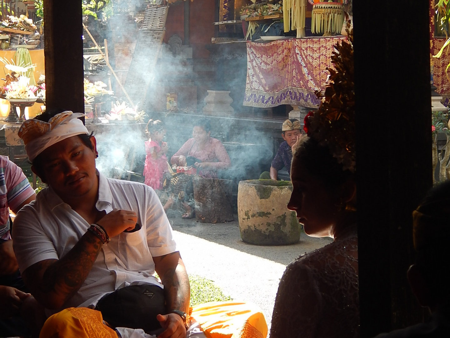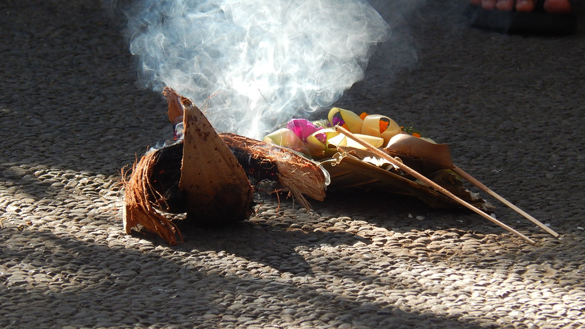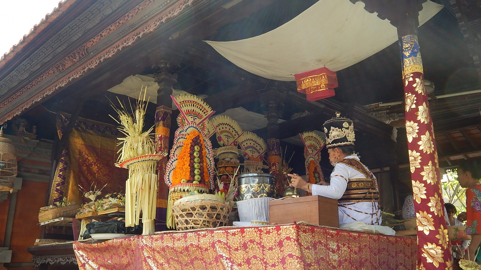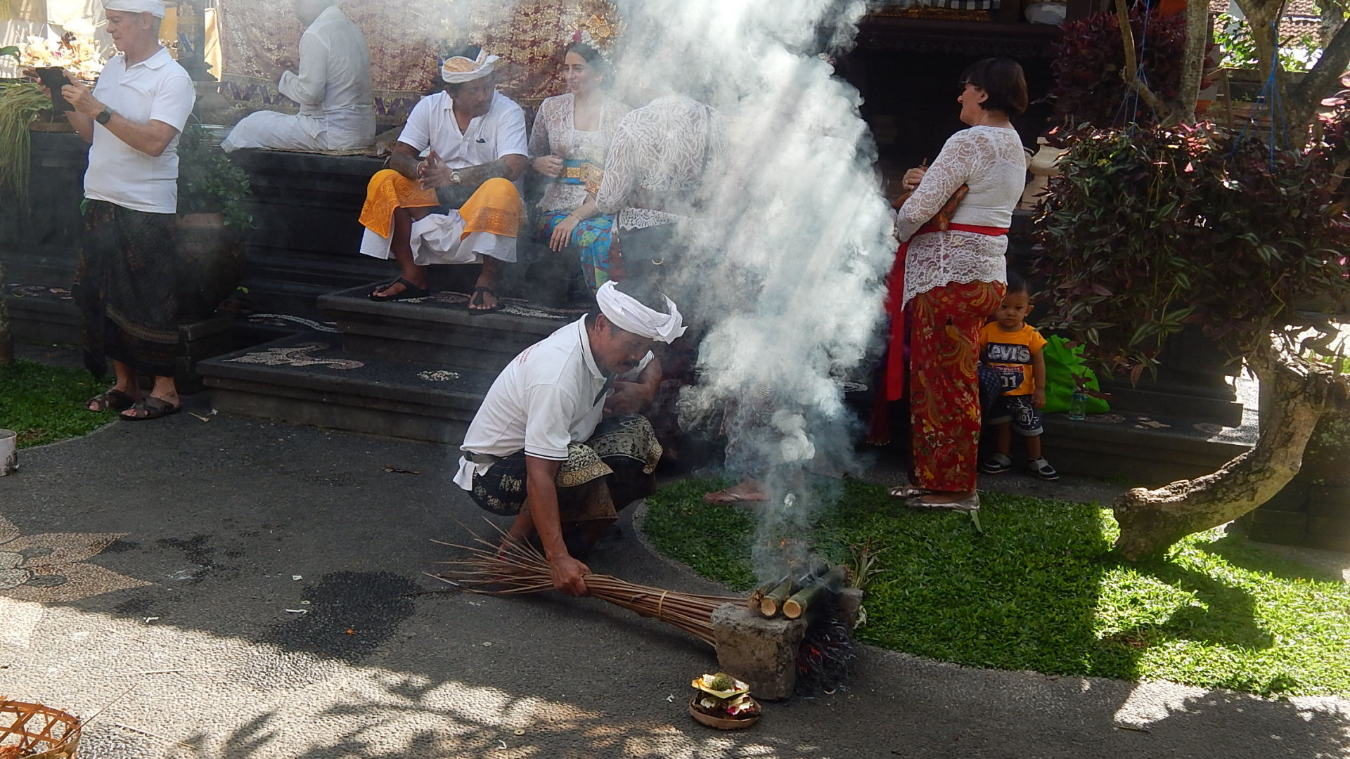 Мангку(священник) долго проводил специальный обряд, оглушительно звенел колокольчик, а дым от благовоний и подожжённой кокосовой скорлупы окутал всё вокруг.