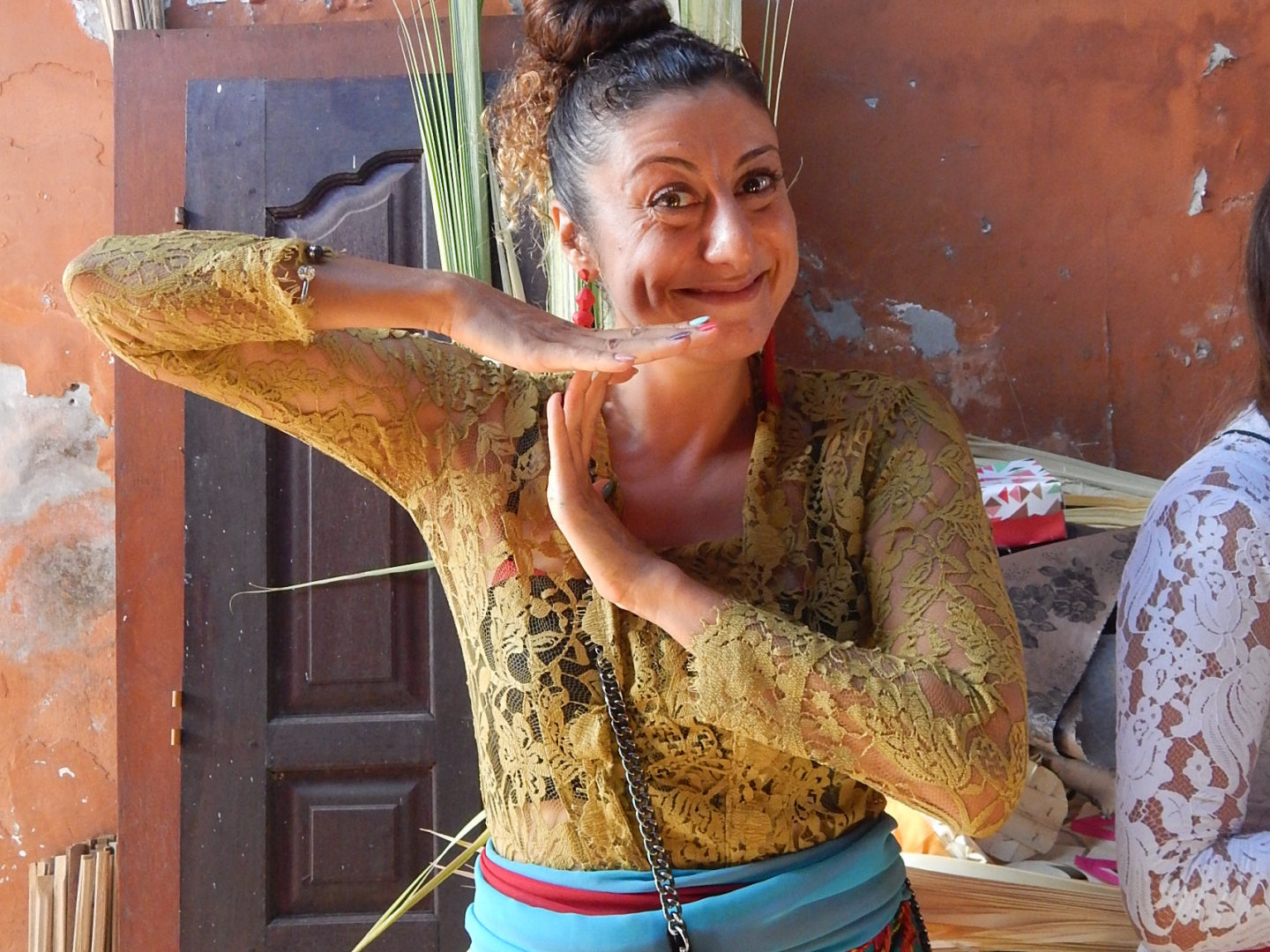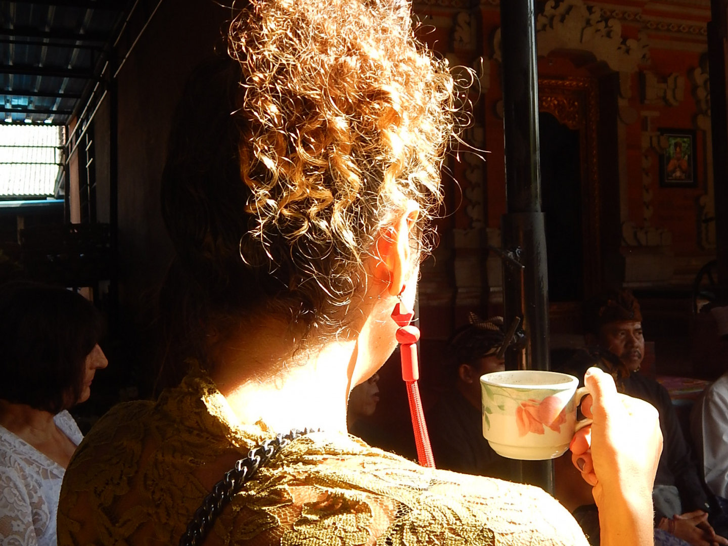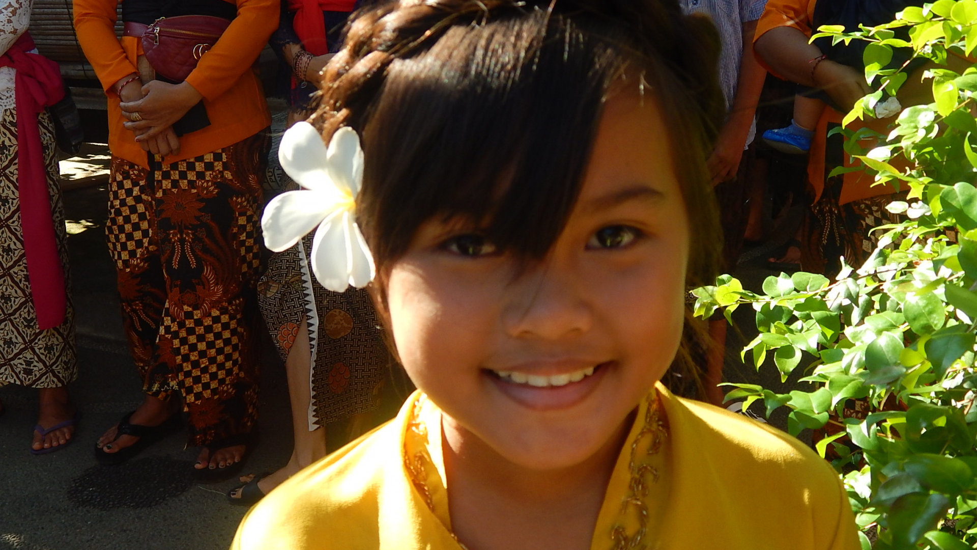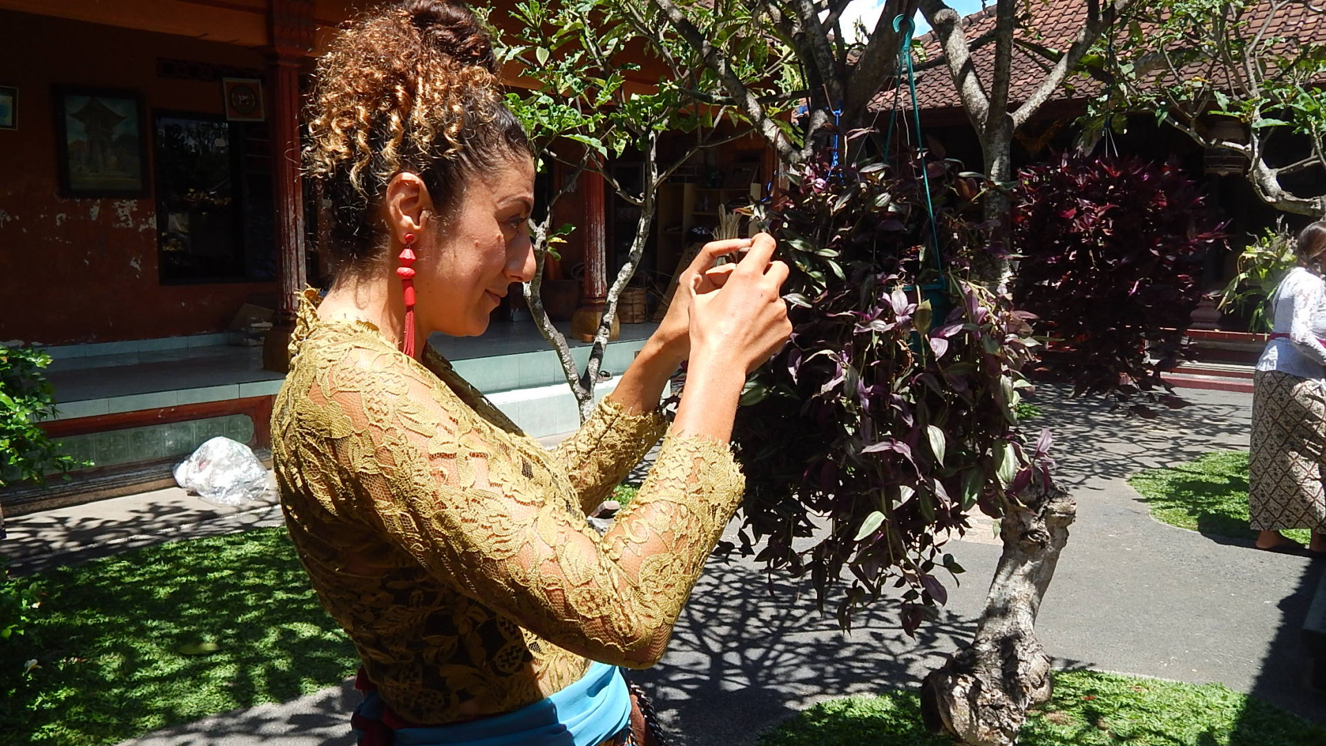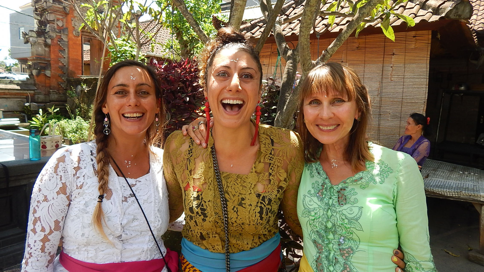 К восьми утра мы были готовы отправляться на церемонию. Она проходила не в нашем доме, а в специальном месте, предоставленным банджаром(общиной). Я забралась пассажиром на байк соседки. В узком саронге пришлось сесть боком и вцепиться в приделанную для этого железяку .