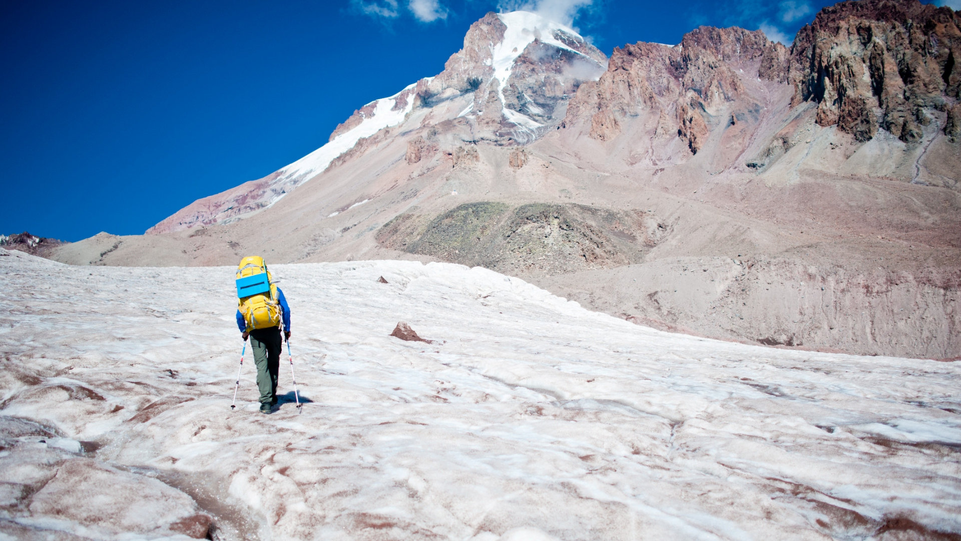 Нужно пересечь ледник, но трещины хорошо видны и легко перешагиваются