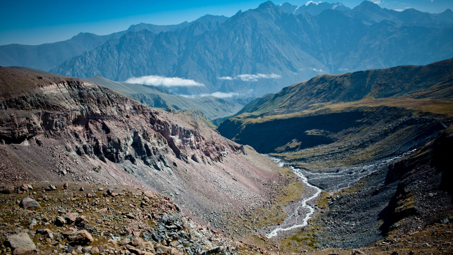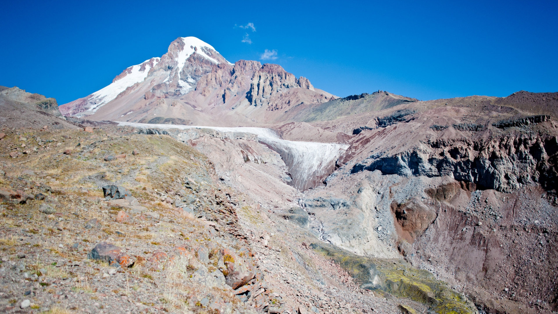 Казбек – вершина Главного Кавказского хребта высотой 5033 м, и туда есть как минимум два пути — со стороны России и со стороны Грузии. Мы (в этот раз мы — это я и найденный вконтакте напарник Максим из Ессентуков) выбрали идти с Грузии — вроде этот путь немного легче, не нужно провешивать веревки, а значит и нести всё это добро не придется.