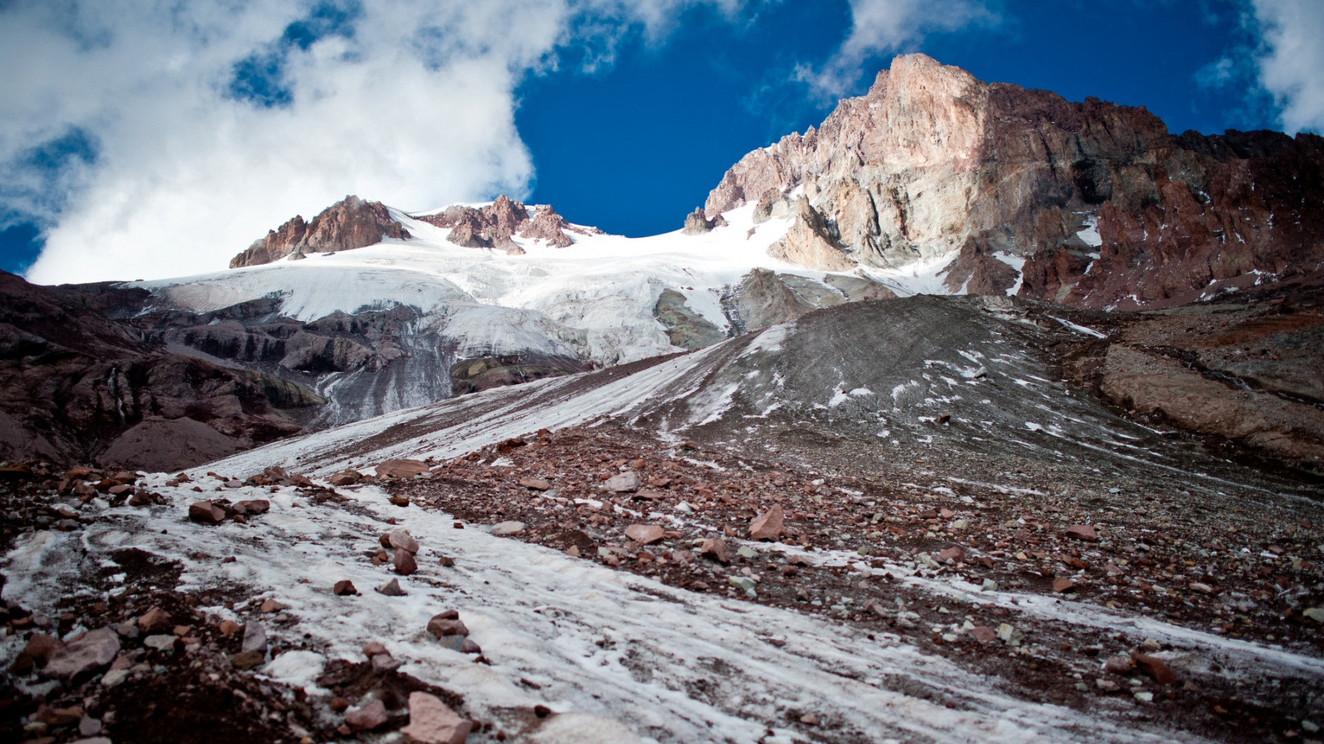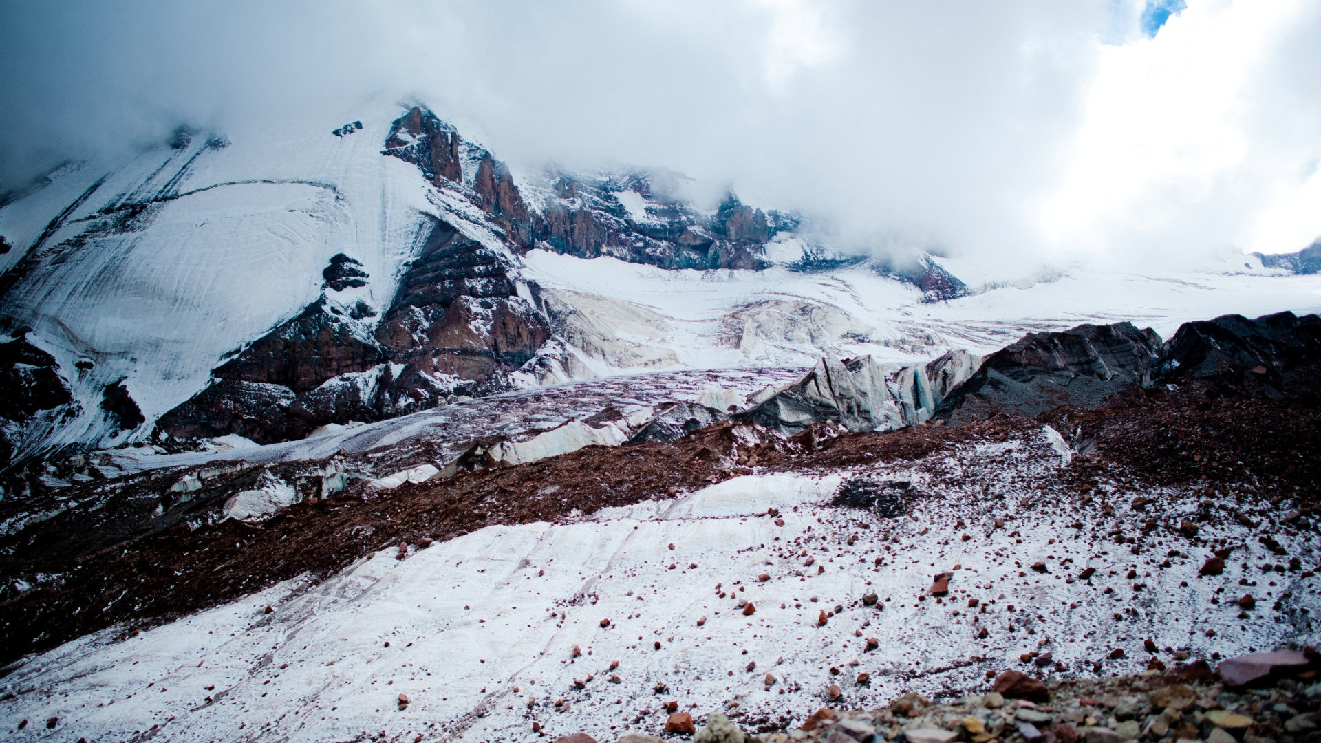 Природа суровая — камни, лёд, снег. Ещё и ветер такой, что палатку запросто порвать может. Но всё равно красота)