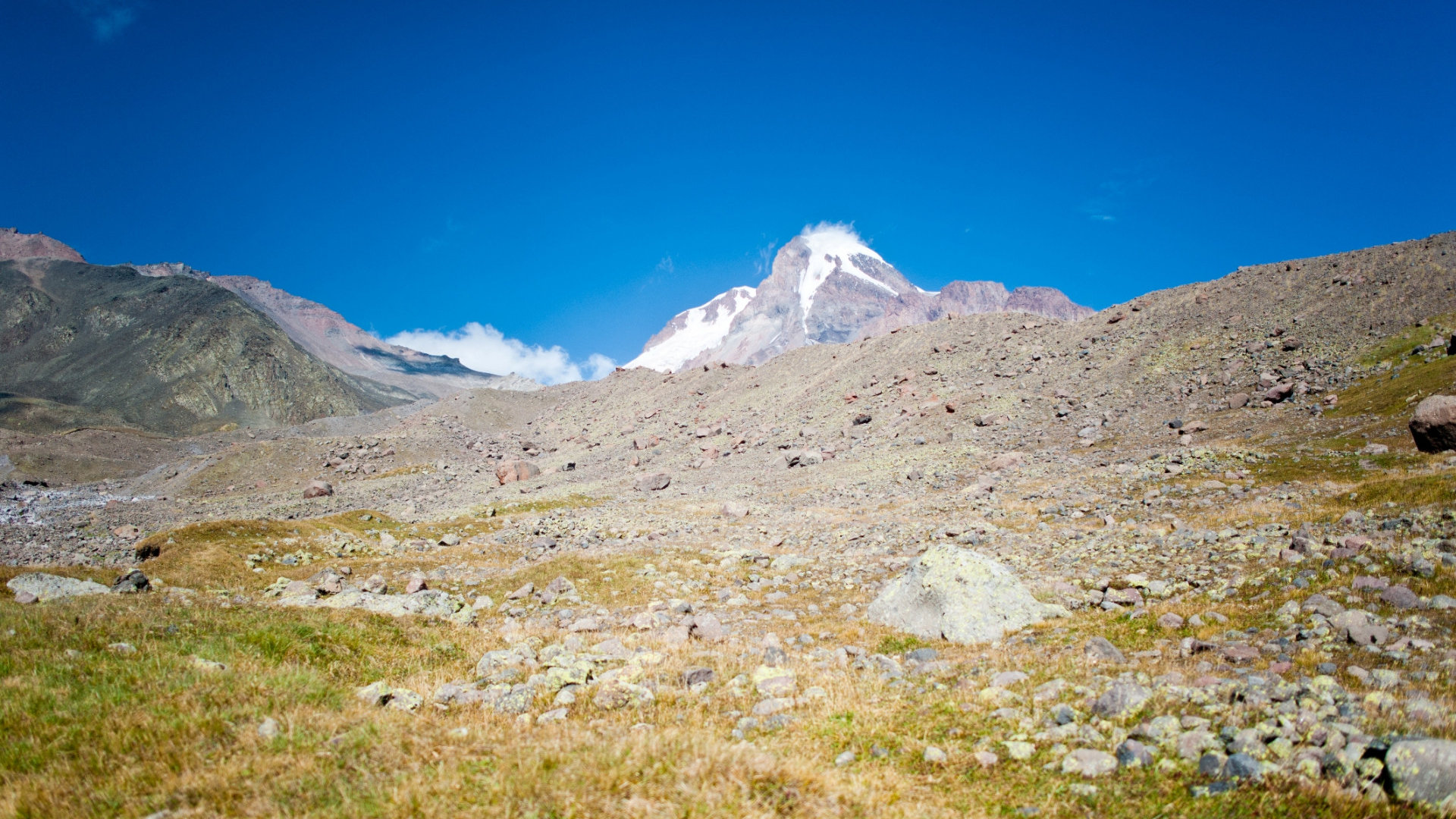 На Казбек хотелось еще с первого путешествия в Грузию, но тогда мы ограничились подъемом к монастырю и ночевкой на огромной поляне с периодическим видом на гору, когда облаками не затягивало.